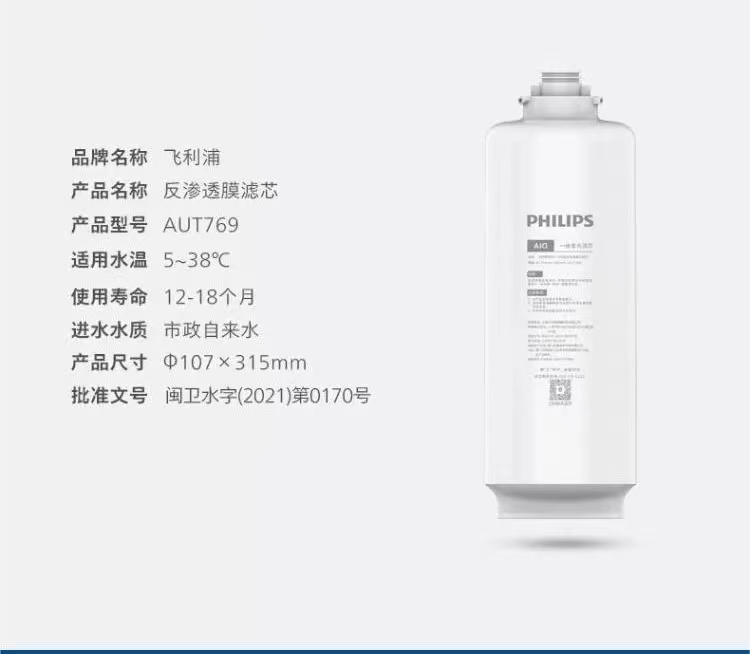 飞利浦(PHILIPS)厨下式净水器滤芯AUT769对应整机:600G厨下净热一体机AUT6042,反渗透复合滤芯
