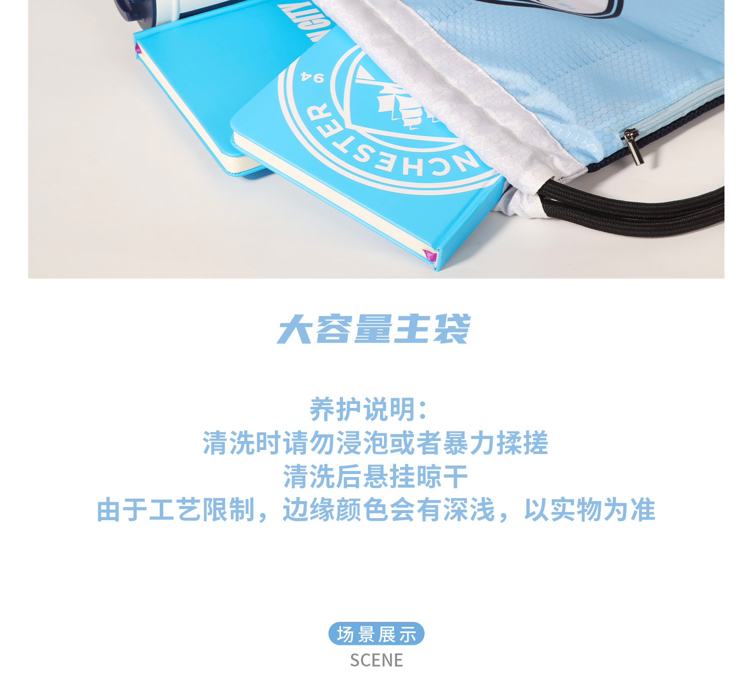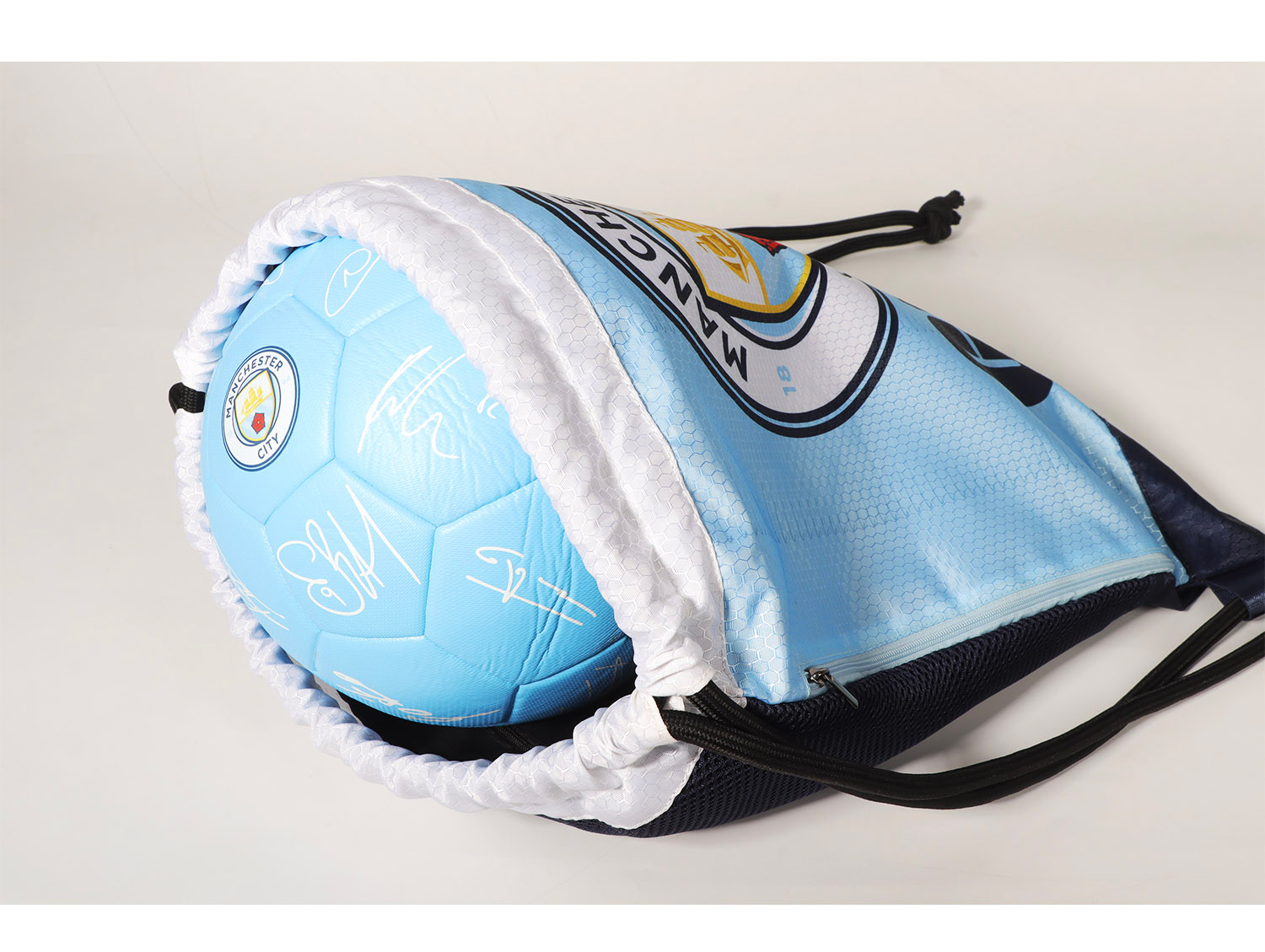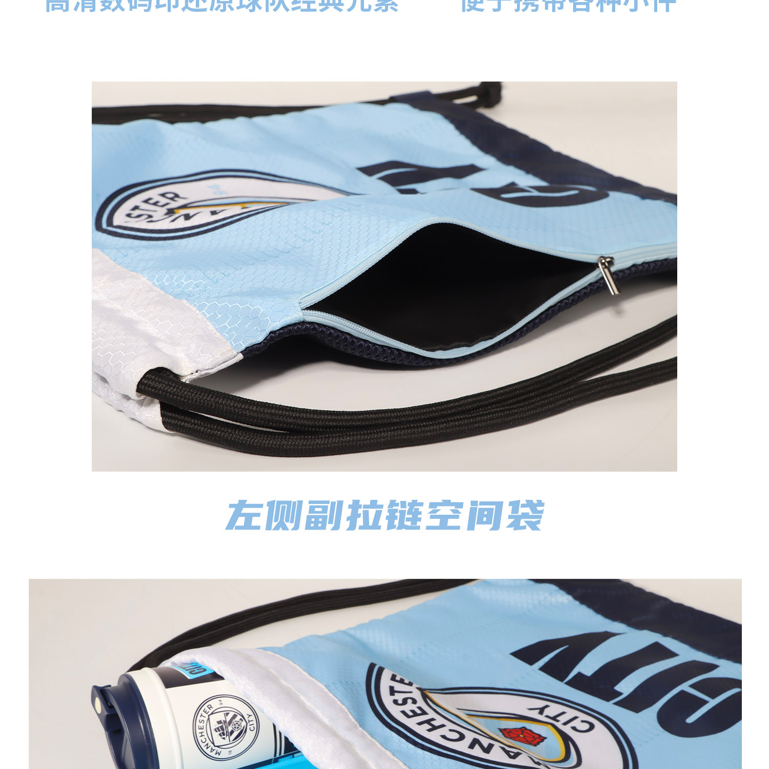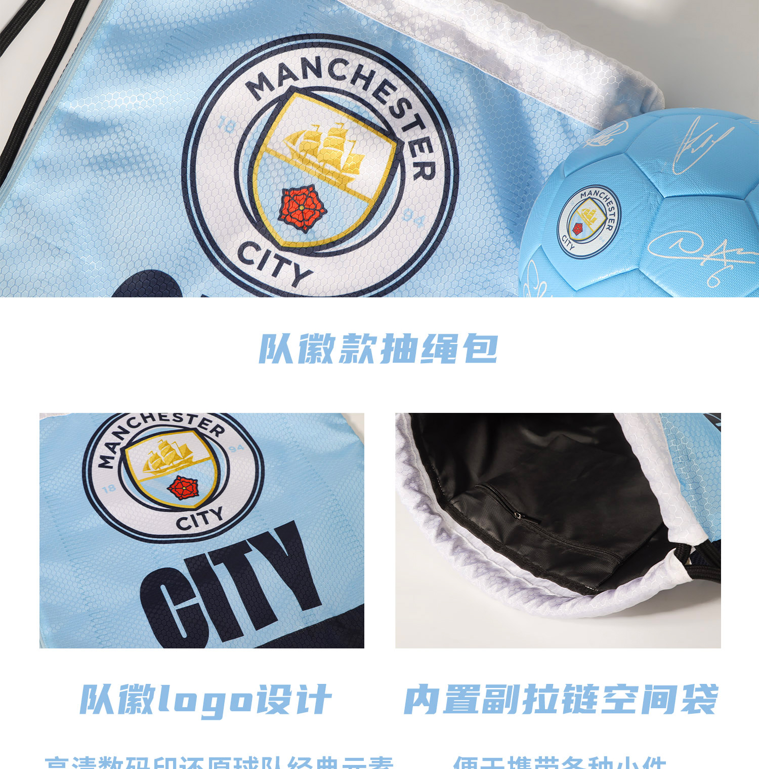 曼城俱乐部官方商品|天蓝队徽抽绳袋足球迷双肩包运动球包大容量