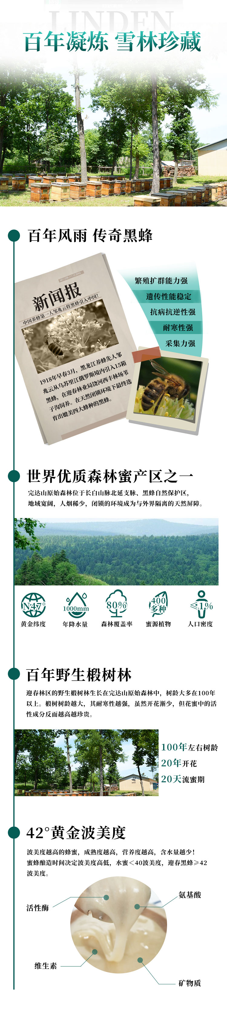 黑森迎春黑蜂椴树蜜 东北原始森林野生雪蜜天然结晶二期蜂蜜400g