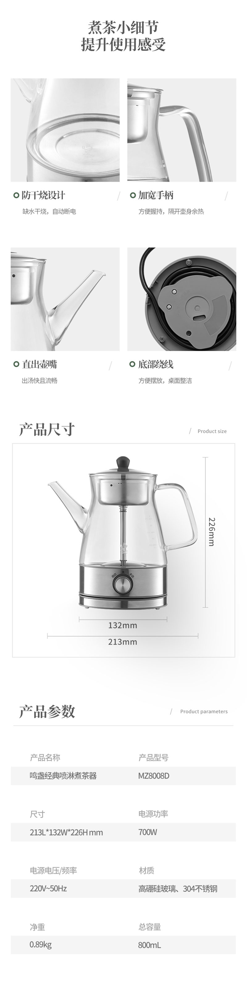 鸣盏喷淋煮茶器MZ-8008D【伊藤优选301692】