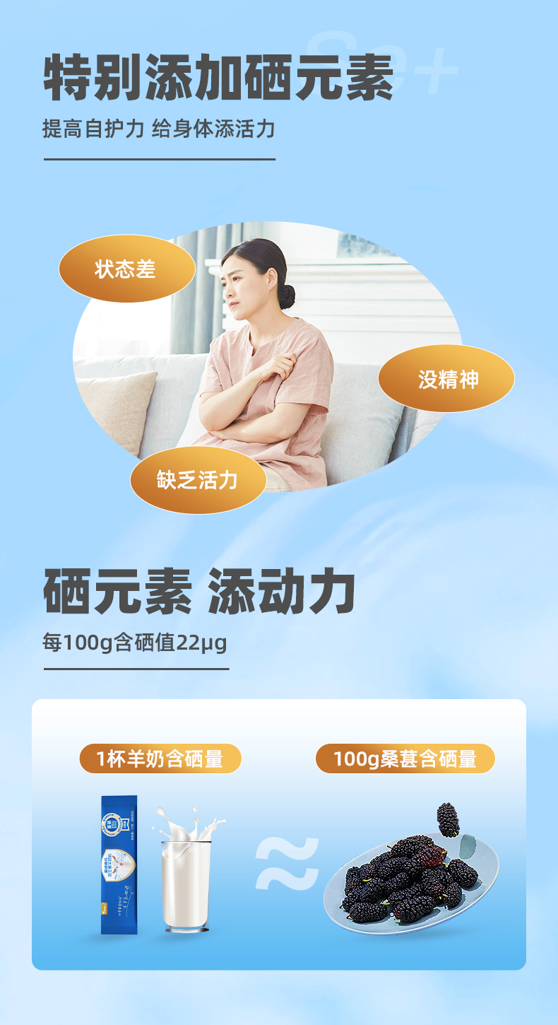 富硒羊:建议早晚各一条,180ml水温水冲泡