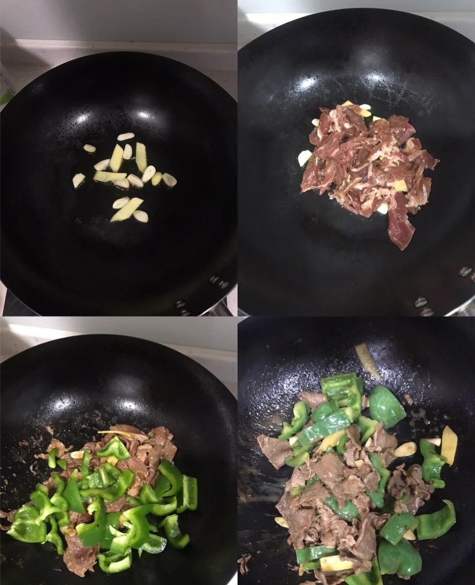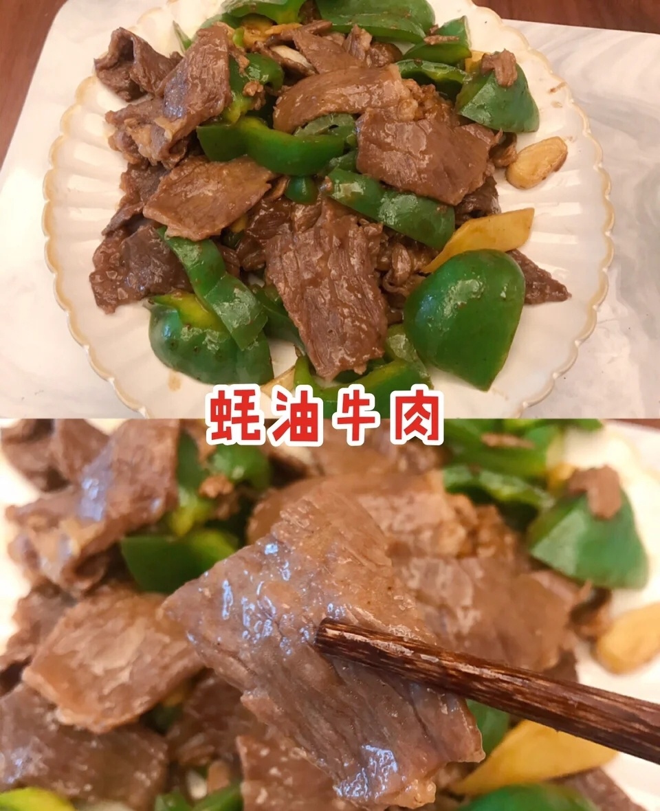 3.倒入煎好的牛上脑,倒入彩椒稍微翻炒,加一点酱油就可以出锅啦。