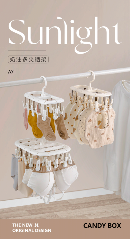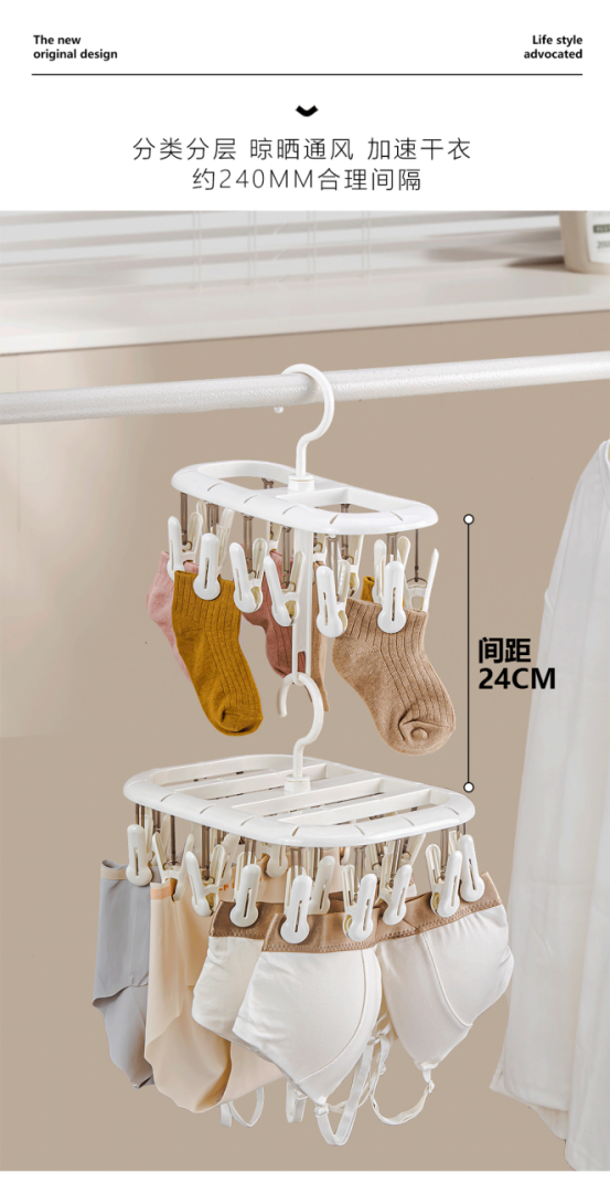 这个真的是小衣物晾晒神器!平常用来挂鞋子、袜子、小孩衣服等 都超级的方便~两款分别是:12夹和20夹 能把那些晾晒衣物一件件“串”起来 实现晾晒和收纳两种功能,配加长叠加杆,可以充分利用纵向的空间,一套就能解决全家小件衣物的晾晒问题,既节约了空间,又方便实用