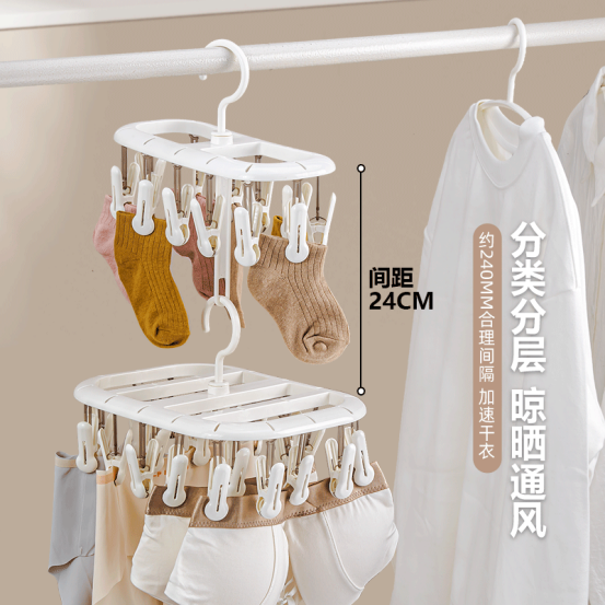 🎀袜子晾晒架🧦多夹子儿童衣架👚家用衣柜收纳🎽阳台防风🌪️晒袜子神器
