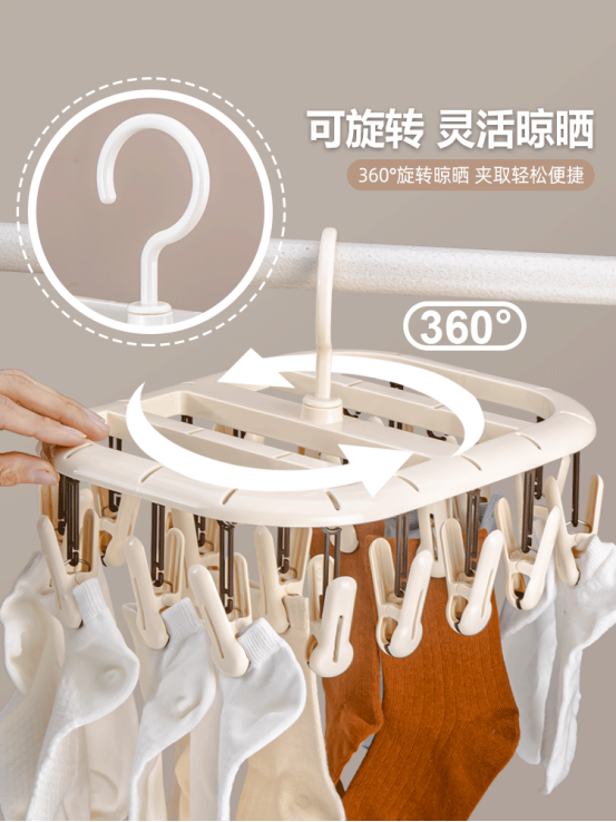 拥有360°可旋转挂钩~ 想转哪边转哪边 无论你想把衣服朝哪个方向晾晒 只需一转,就能轻松实现,相比大而笨重的晾衣架 我们这款晾衣夹 更加轻便且省空间 用起来巨方便 节省空间而且也不占地方 可折叠收纳更方便 旅行出差也便携