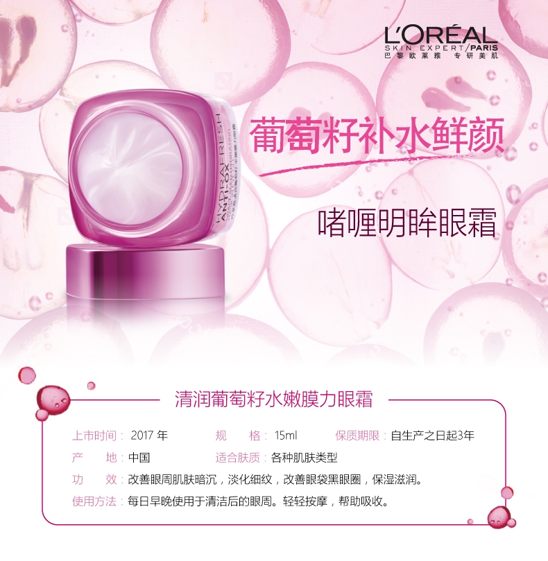 欧莱雅清润葡萄籽水嫩膜力眼霜15ml/盒