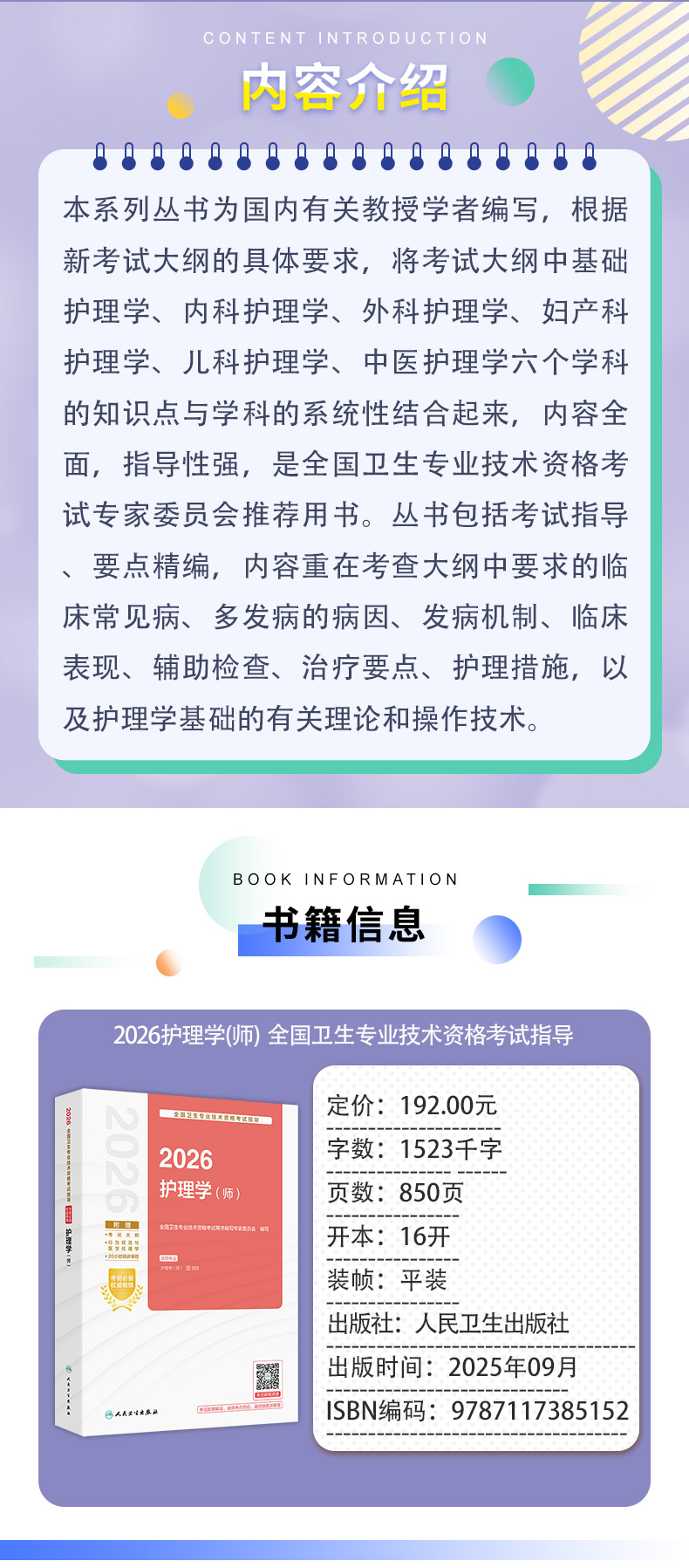 书名:2026护理学(师) 全国卫生专业技术资格考试指导