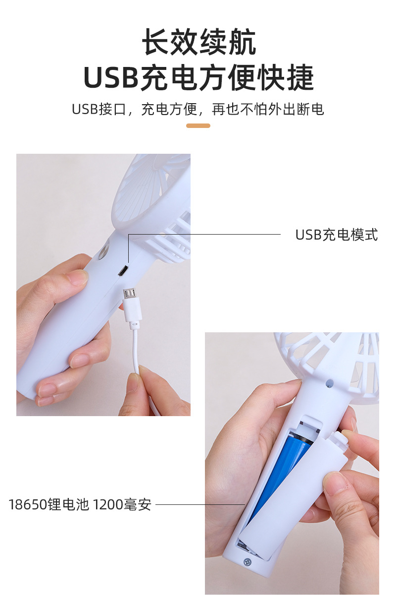 【一扇两用便携手持风扇,你的夏日伴侣~】静音大风力USB充电手持风扇 小巧便携桌面学生迷你小电风扇。ry