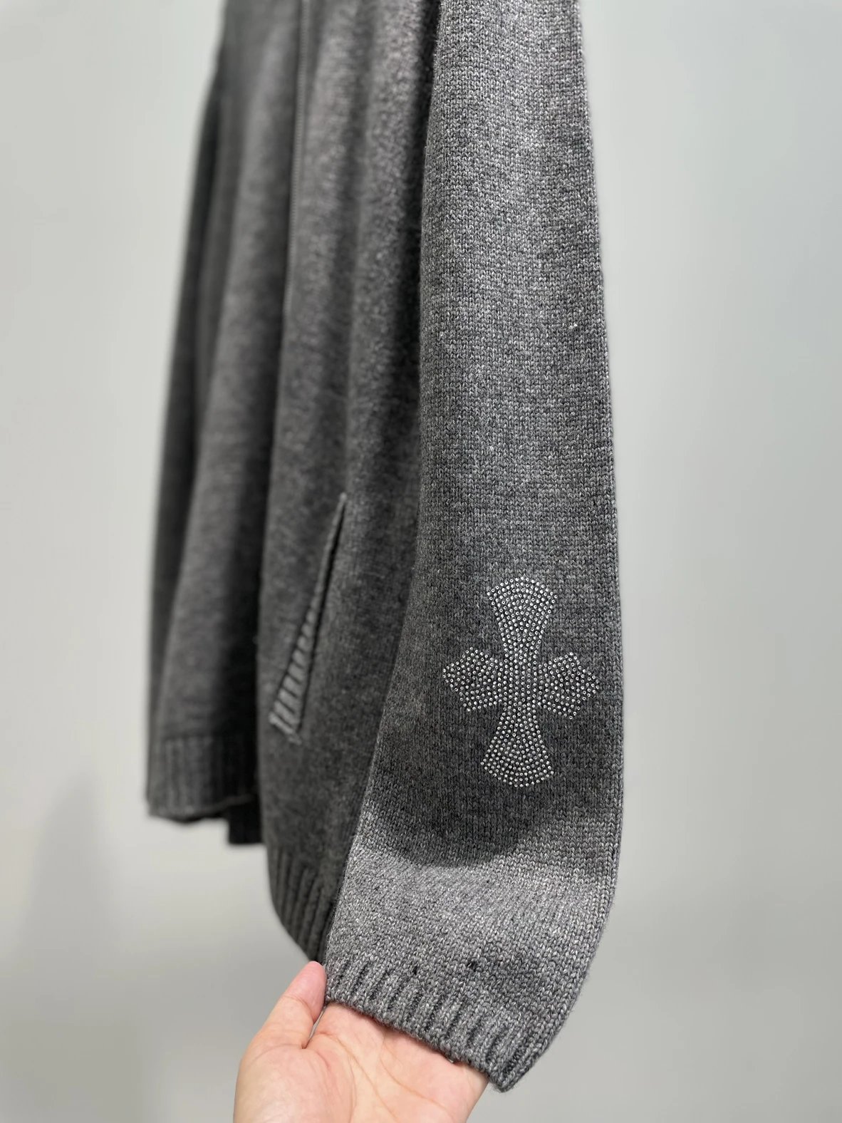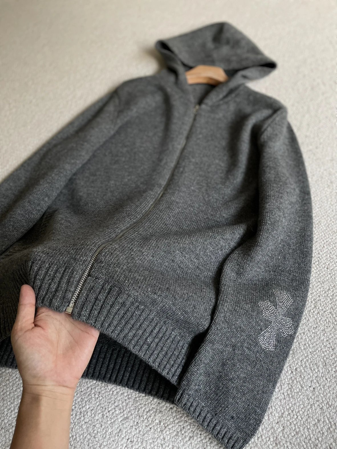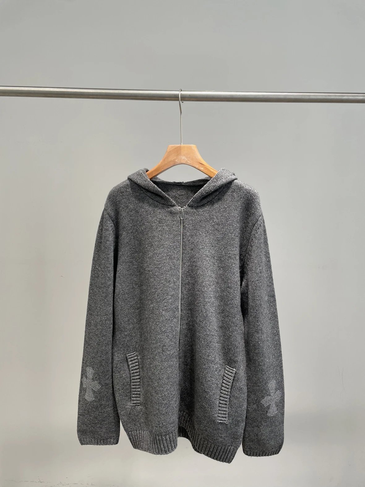 双11福利款 克罗十字水钻拉链毛衣 绵羊毛牦牛毛混纺 男女同款 连帽拉链外套