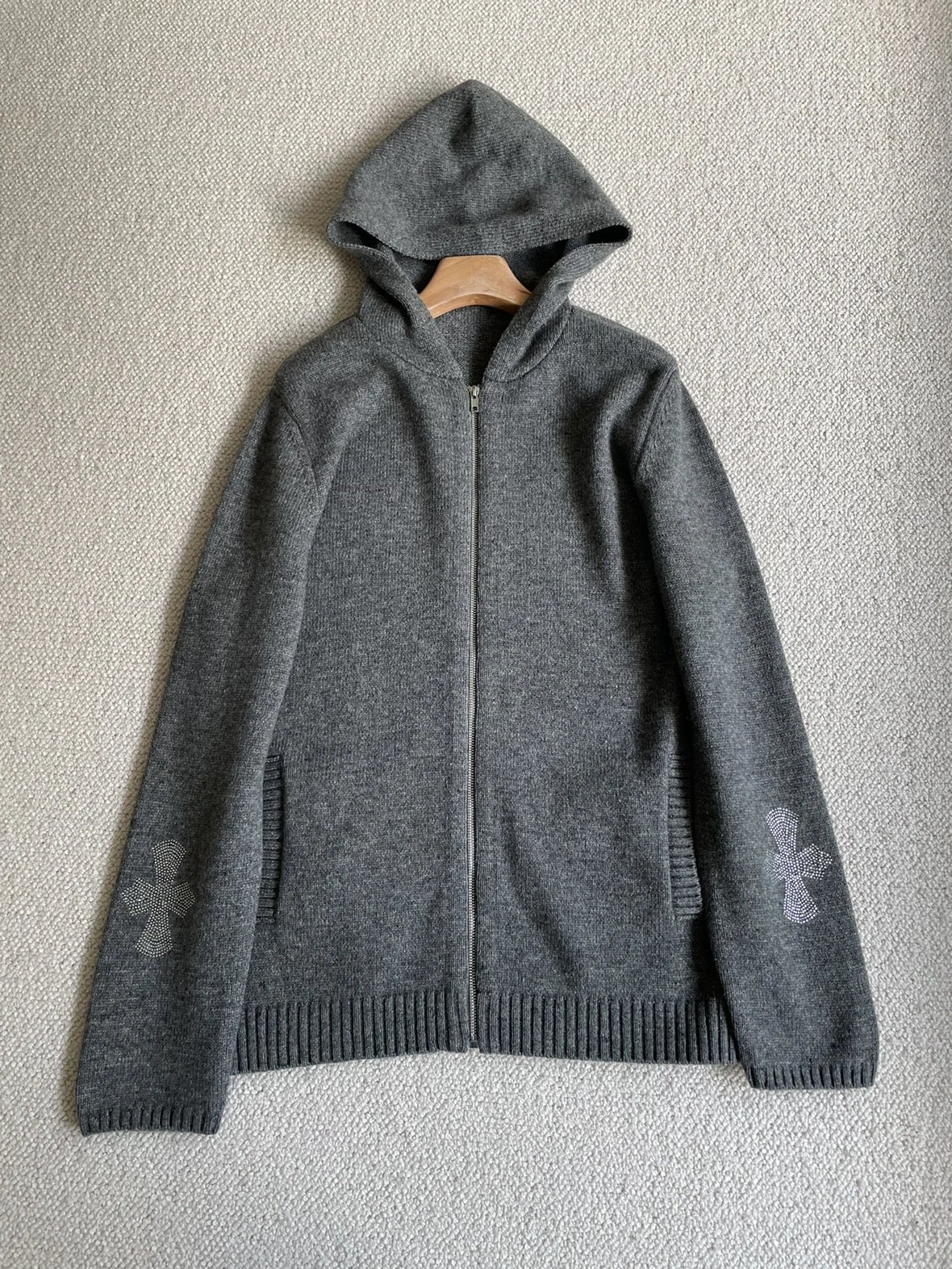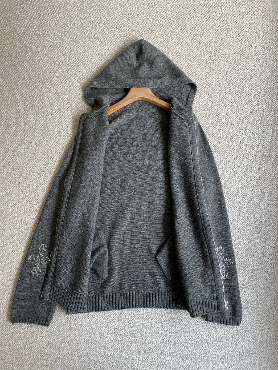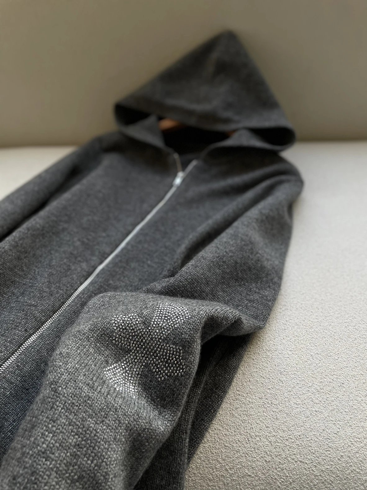 双11福利款 克罗十字水钻拉链毛衣 绵羊毛牦牛毛混纺 男女同款 连帽拉链外套