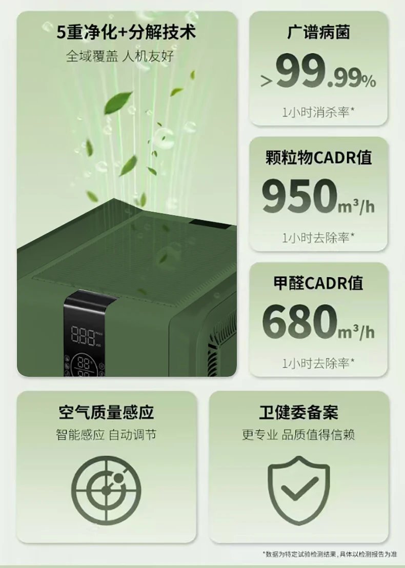 AOE中国电科AOE空气消毒机智能空气净化器CMCS-02P-军绿色