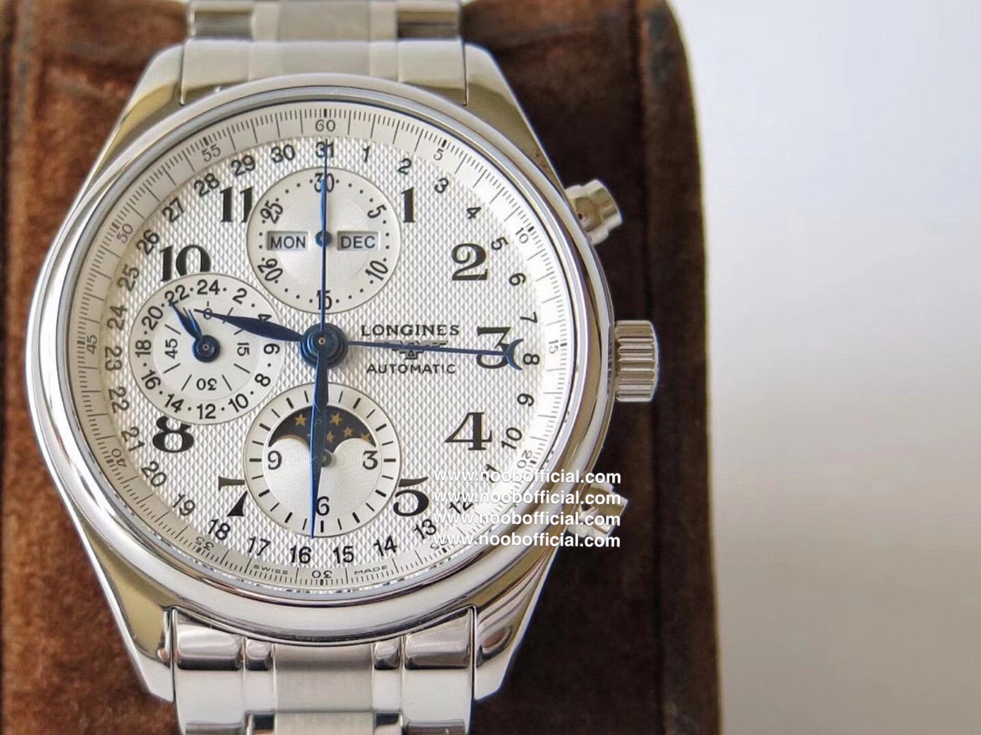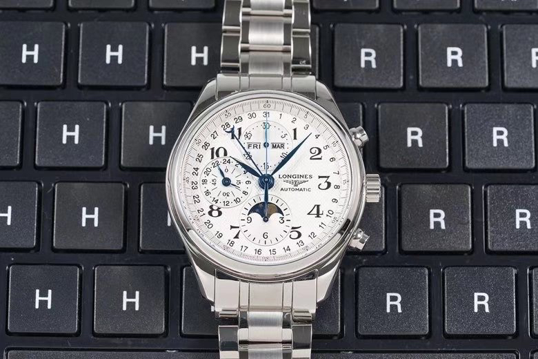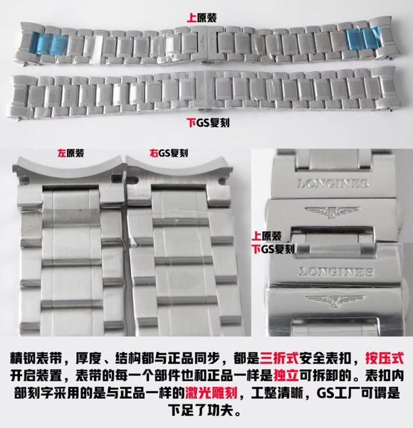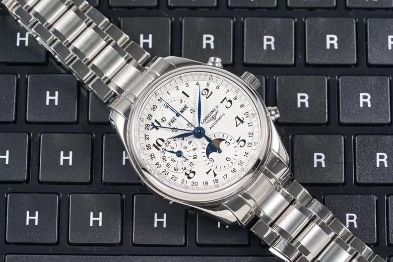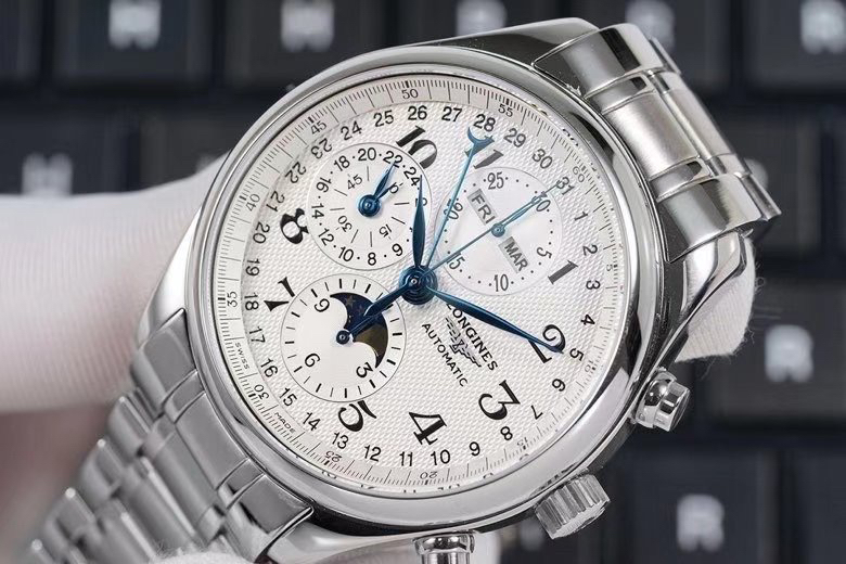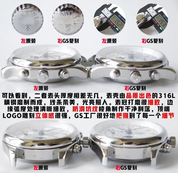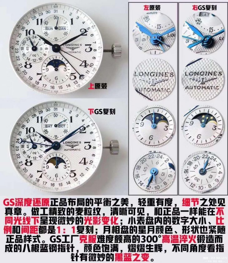 gs厂浪琴名匠月相八针复刻表,相信很多人都有了解过这款多功能计时手表,销量一点都不输于劳力士、沛纳海这些豪华品牌,这是一款入门级必选的多功能计时复刻表,占据了很大的市场,因为它在选材方面不同于豪华手表品牌,都是一些比较大众的材质,所以大部分表友都可以接受,这就让很多复刻表厂家都看到了机会,有很多复刻表厂都在复刻这一款浪琴手表,比如之前小编写的tw厂浪琴名匠月相八针和3m厂浪琴名匠月相八针复刻表,还有JF厂、YL厂都有复刻,但是在这里面脱颖而出的两个厂家就是3m厂和今天的主角gs厂复刻的浪琴月相八针,今天我们就来简单聊一聊gs厂月相八针对比正品怎么样!