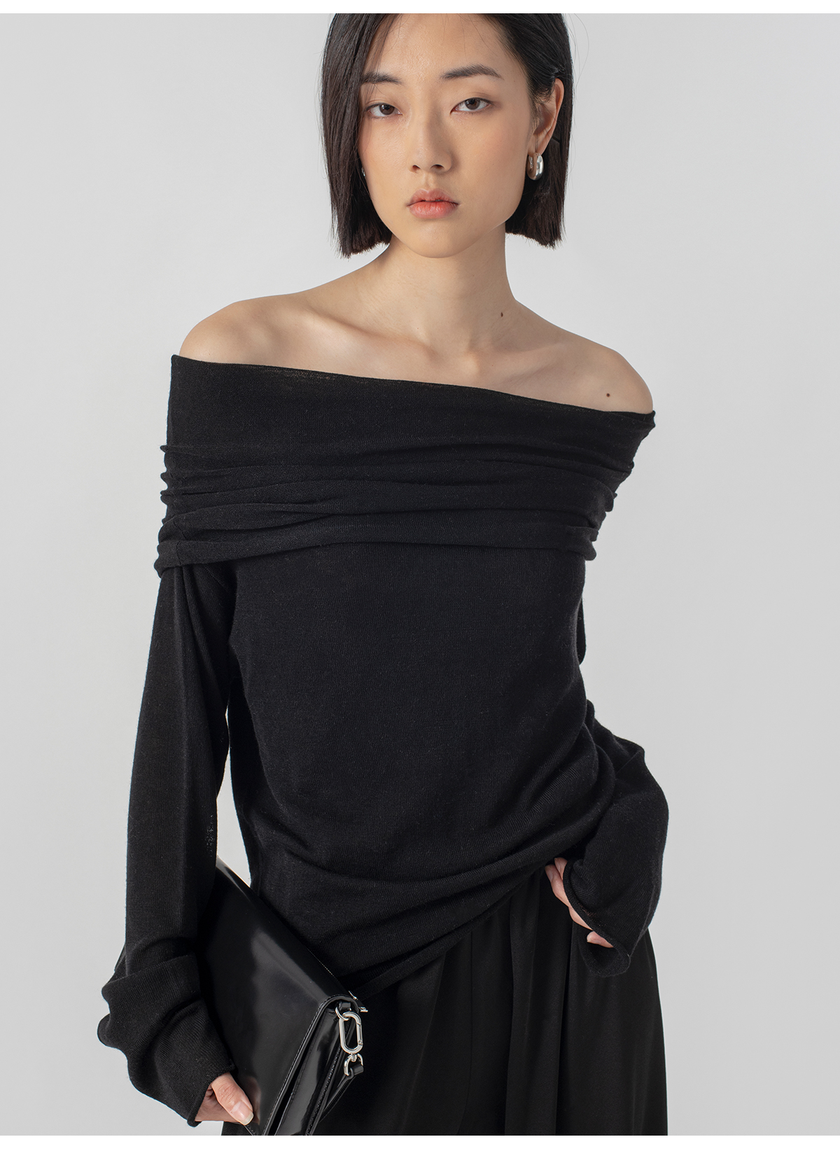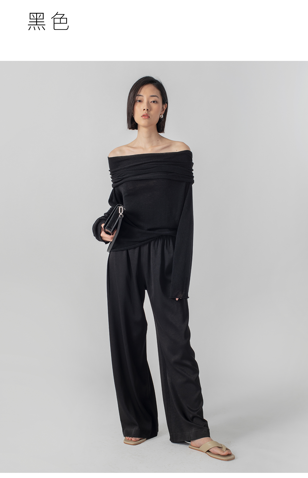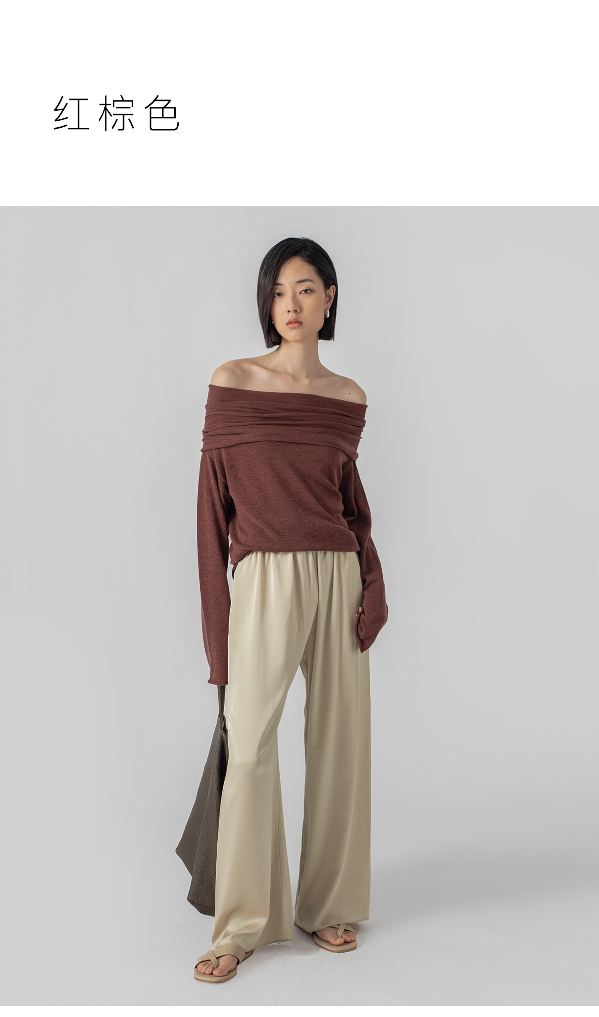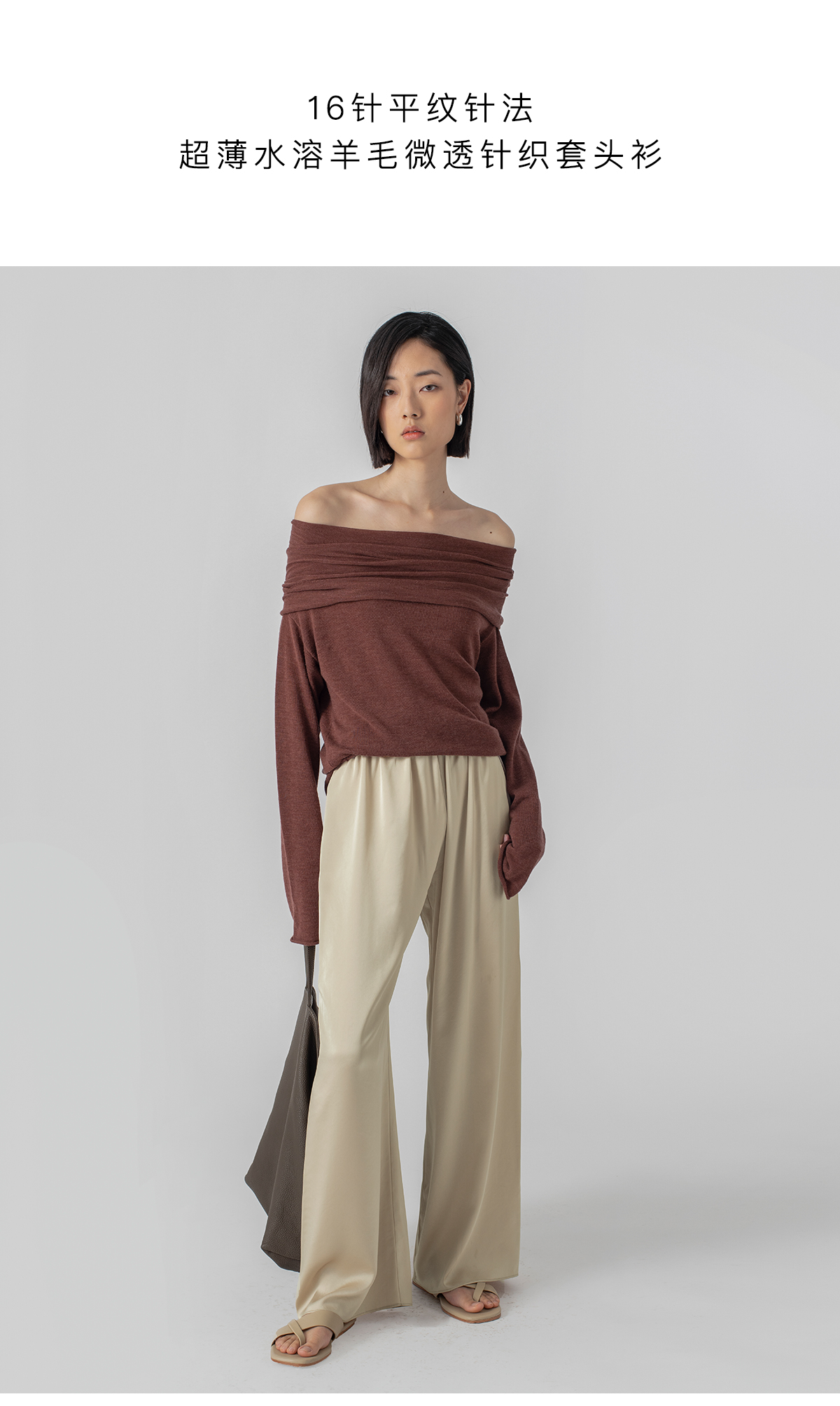 322工房质感单品水溶羊毛针织套头衫2023春夏款一字肩打底衫B040