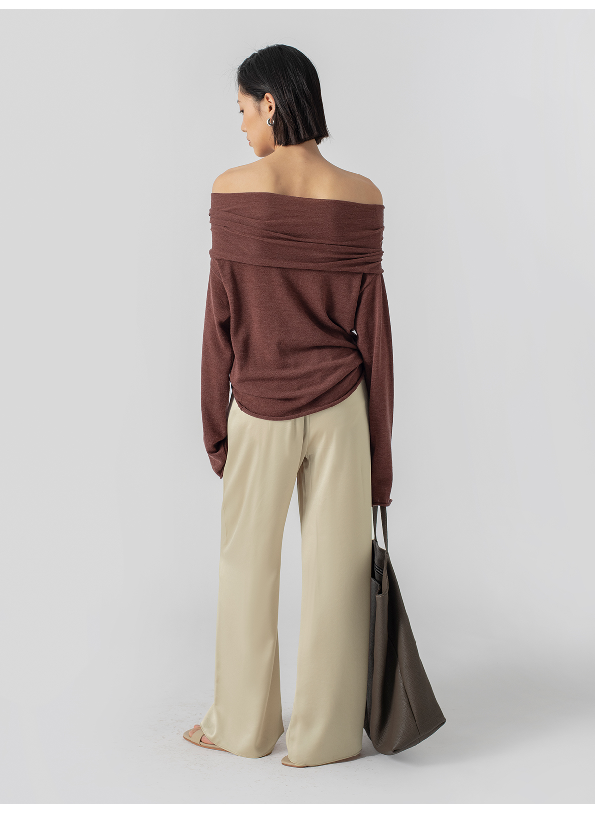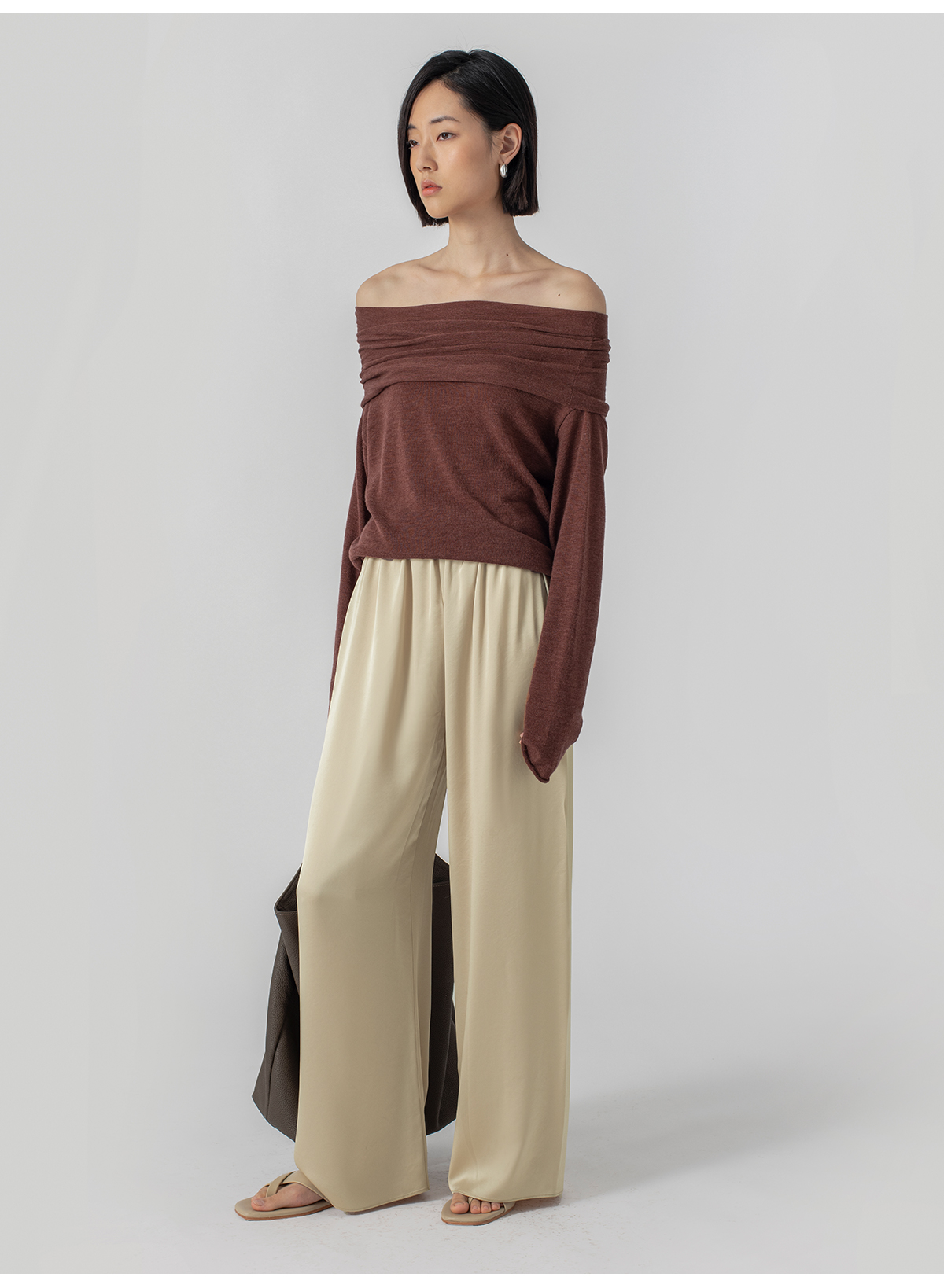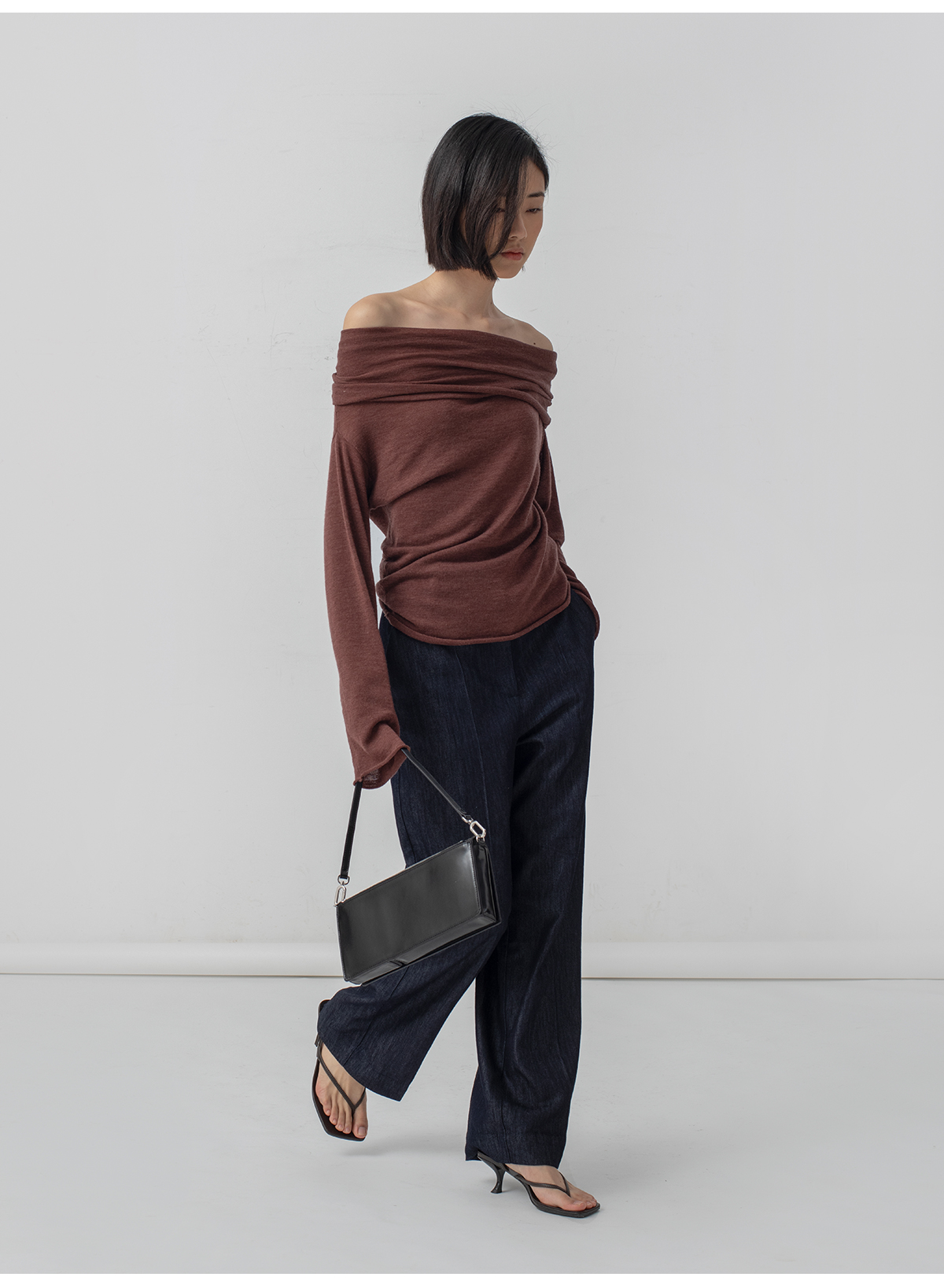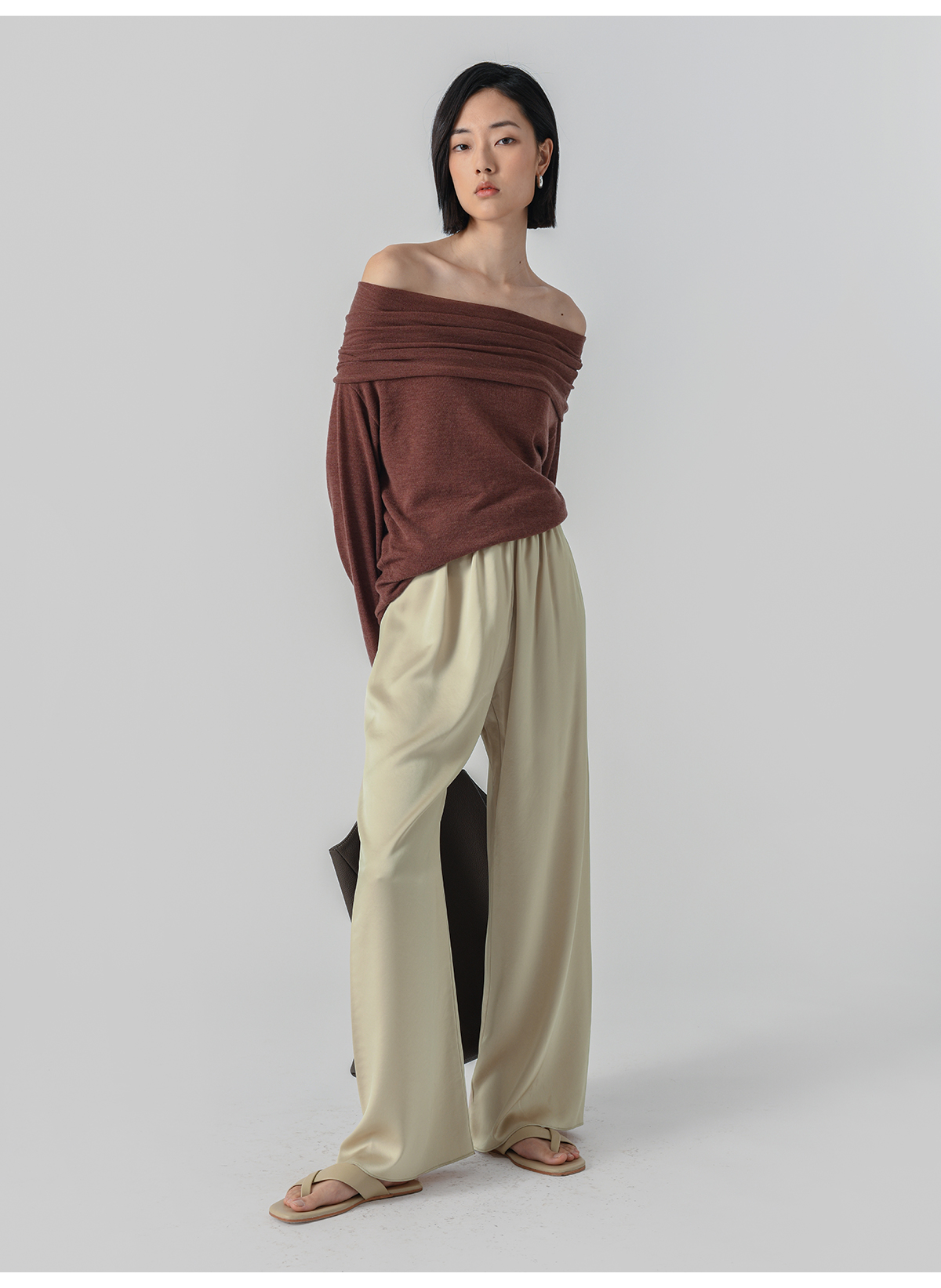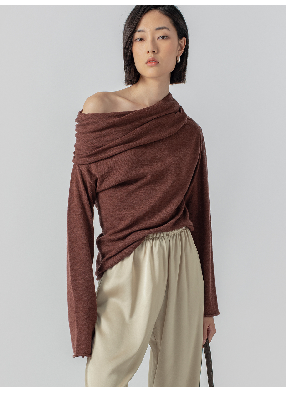 322工房质感单品水溶羊毛针织套头衫2023春夏款一字肩打底衫B040