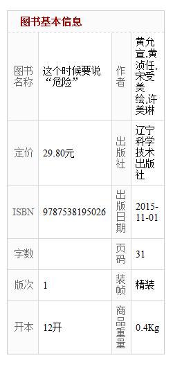 | 适读人群 :3-6岁 每个妈妈都希望自己的孩子平安、健康地成长,可我们的生活中总是有各种各样的安全隐患,我们从小就告诉孩子不要摸电源,可有时候,你越禁止,越厉声喝止,孩子们却更加好奇,更加想要探索,这本书,展示了一个个危险的场景,展示了孩子们*可能做出的危险动作,并且通过孩子们容易接受的形式,告诉孩子危险的行为会有什么严重的后果,如何避免危险的侵害。读一本绘本,远远比你严厉的禁止更能让孩子们接受,更容易让孩子们学会自我保护! |