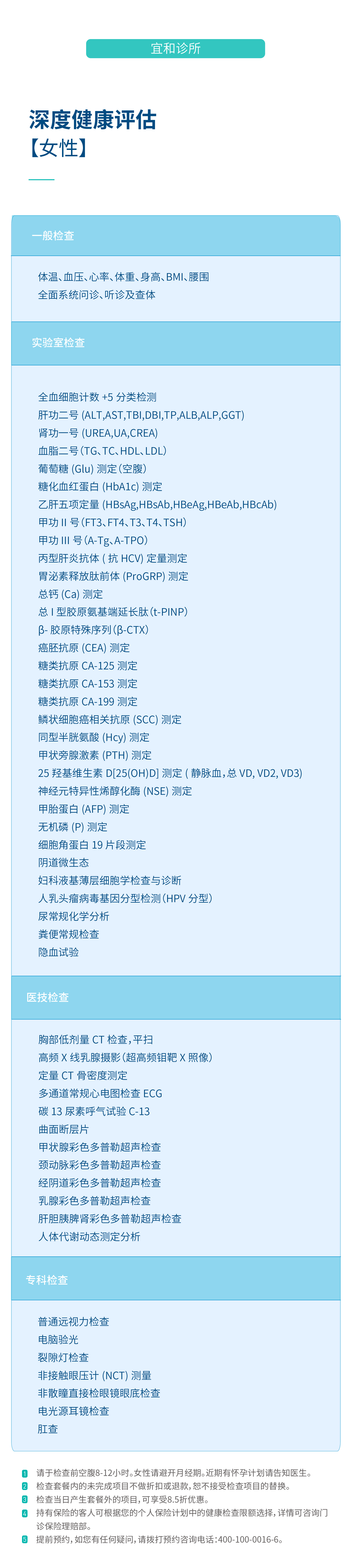 【综合门诊&新中关宜和门诊适用】双11 女性深度健康评估套餐