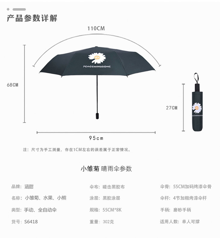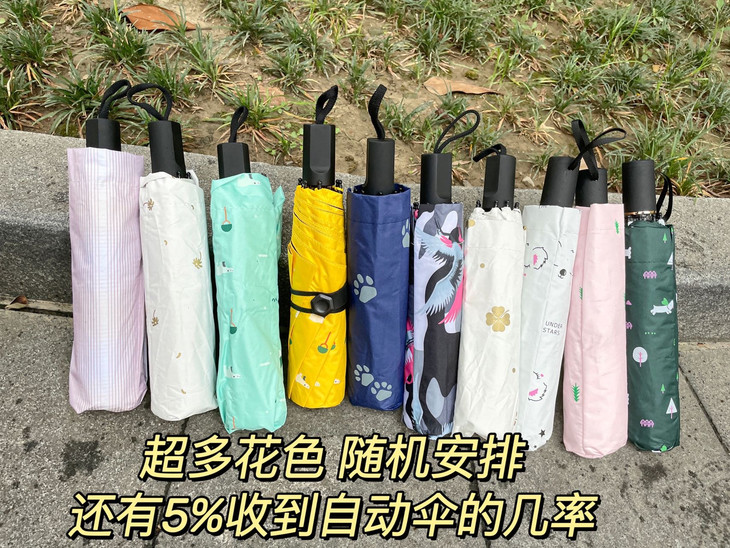 做太阳底下不怕晒崽呀 精致小巧,出门拿着很方便呢 上课,约会路中都带上它啦 一个夏天都没晒黑的㊙️ 都是靠这把防晒伞 它收伞的地方也完全不会怕夹到手 整个质感都很无敌 部分花型展示,还有5%机会开出自动伞