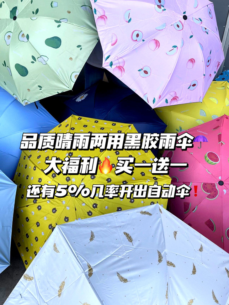 款式花样超级多 有5%的可能性能抽中自动伞哎 自动伞超省力,看看有没有那个运气啦✌🏻️ 每款伞的颜值都很高!关键这个价格其他地方根本买不到!结实耐用!伞老是找不到,那就多备几把吧!!