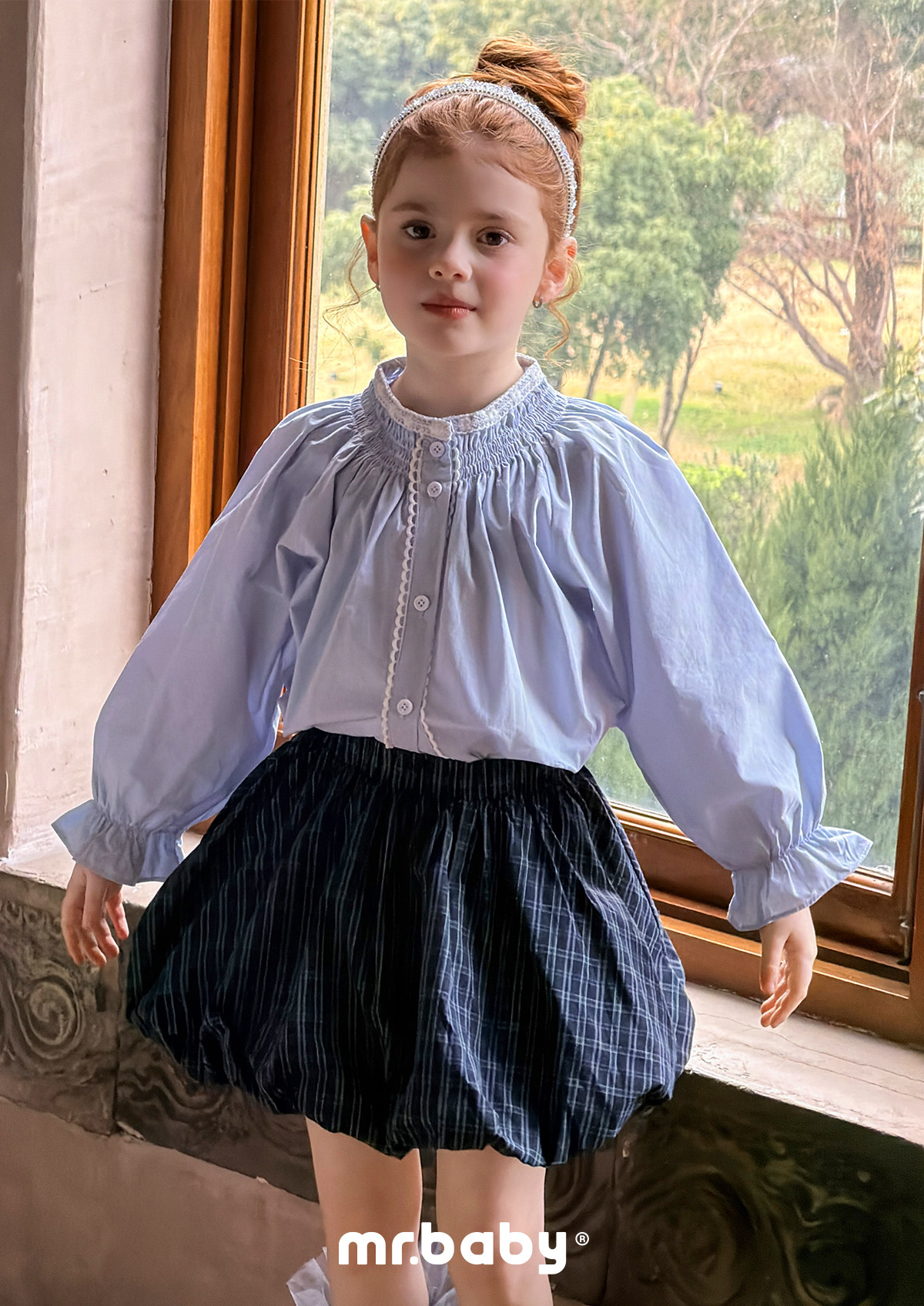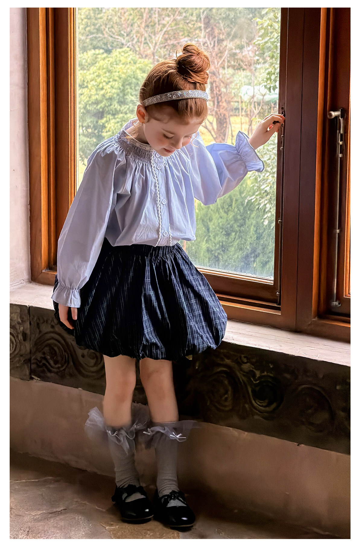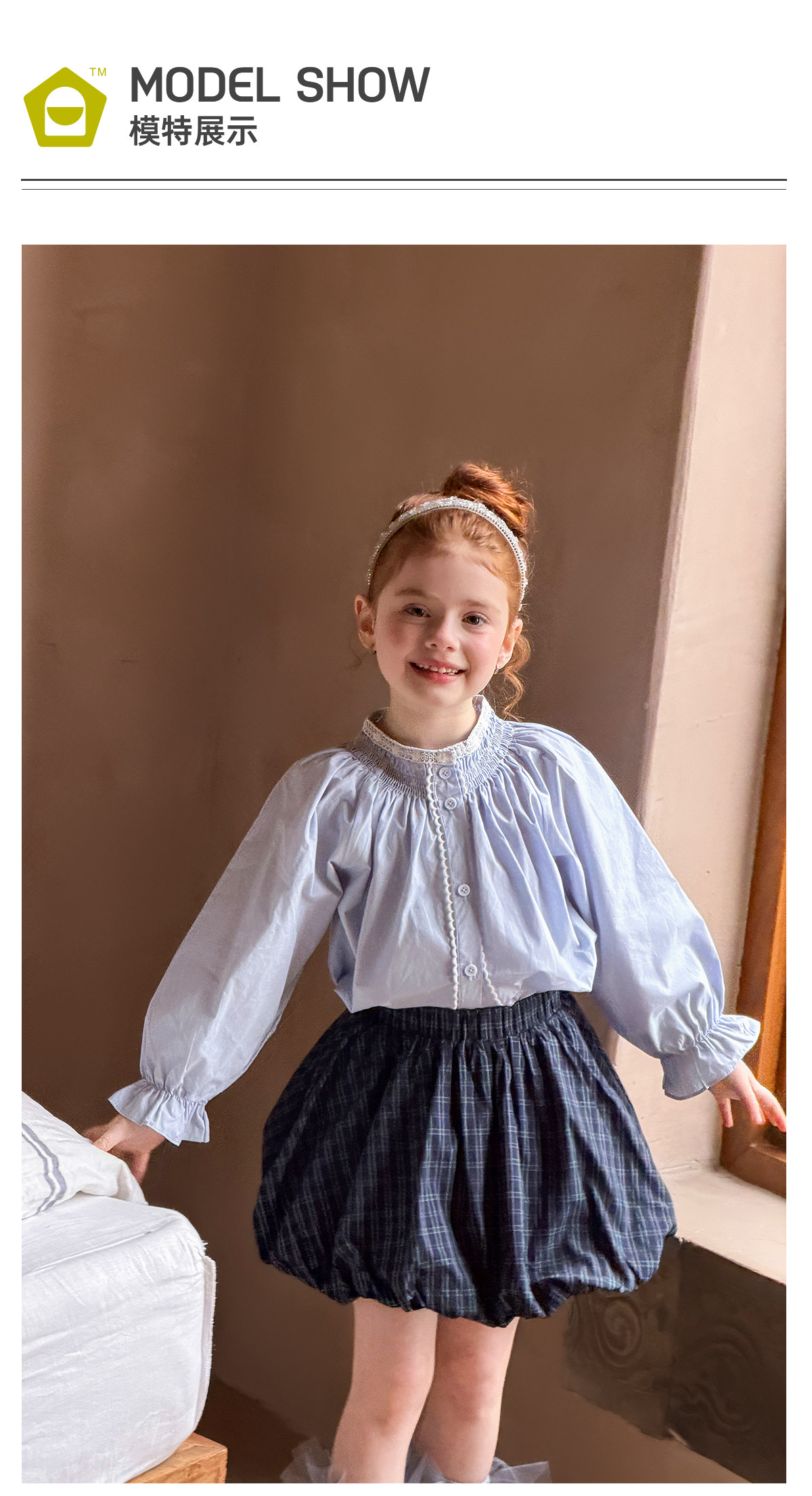 mr.baby春夏韩式复古甜心风灯笼袖木耳边衬衫女童百搭学院上衣
