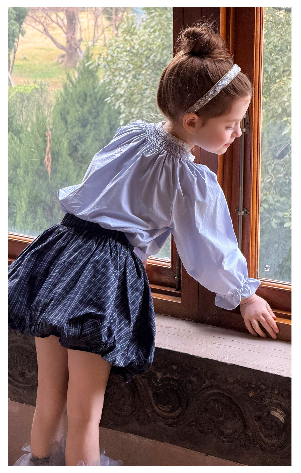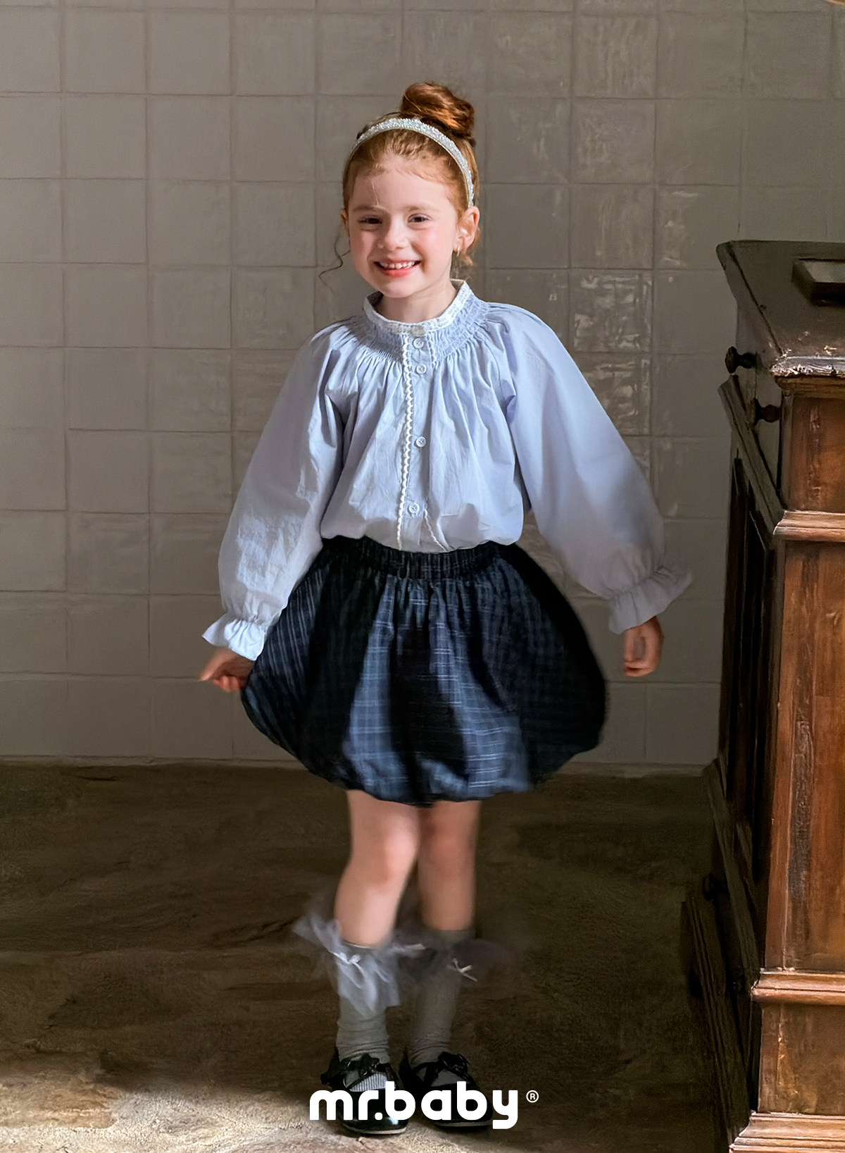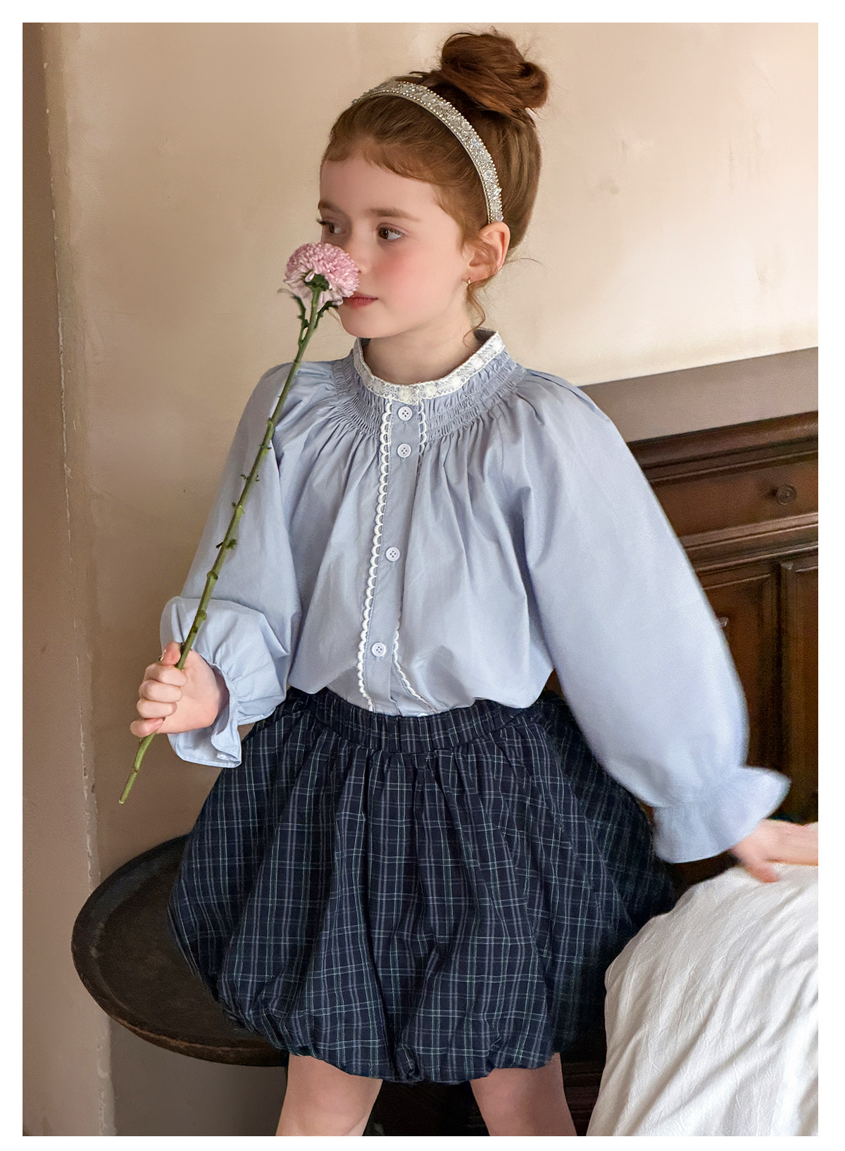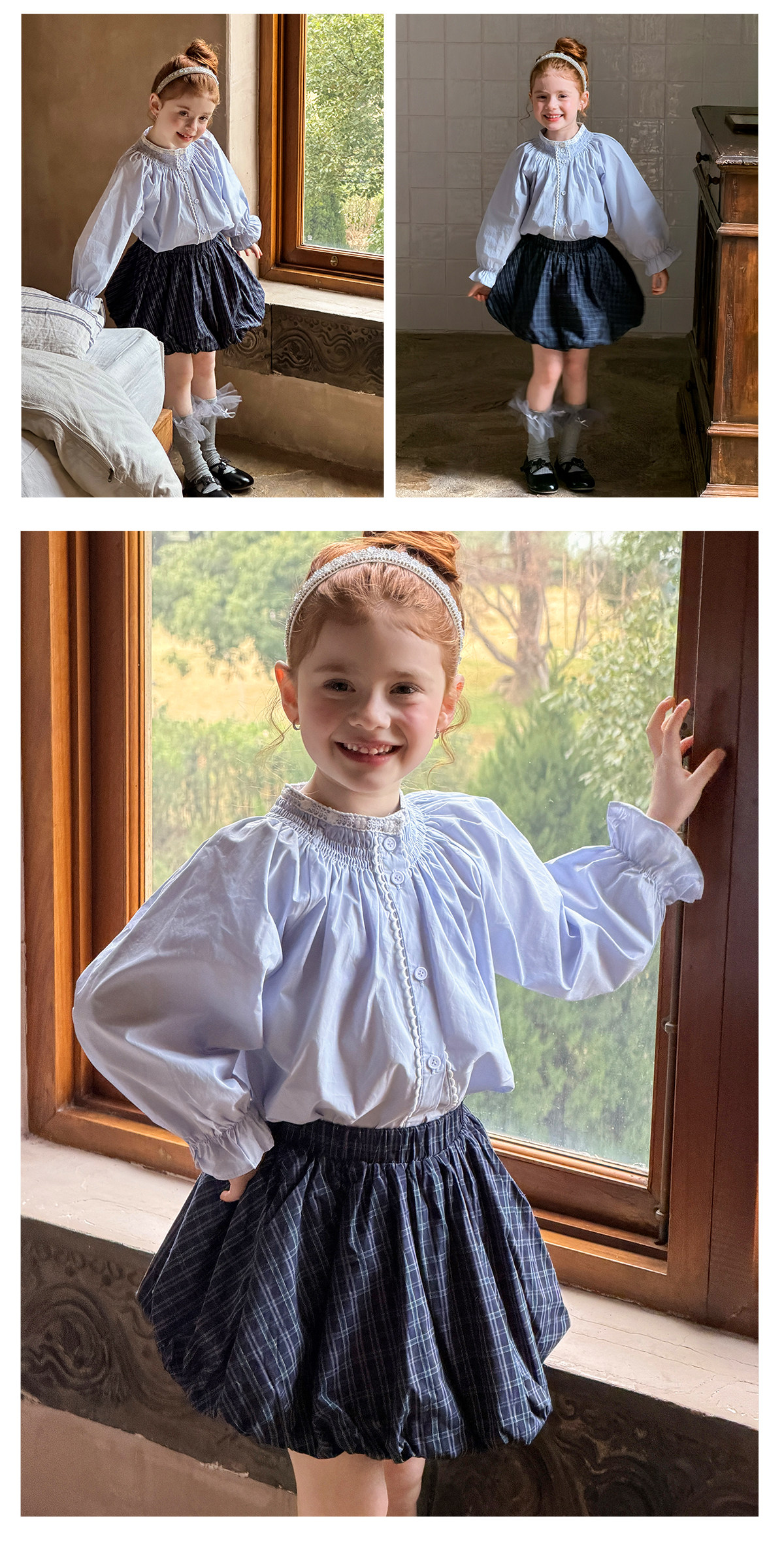 mr.baby春夏韩式复古甜心风灯笼袖木耳边衬衫女童百搭学院上衣