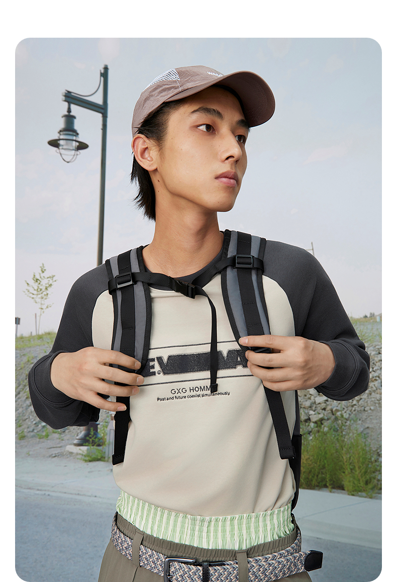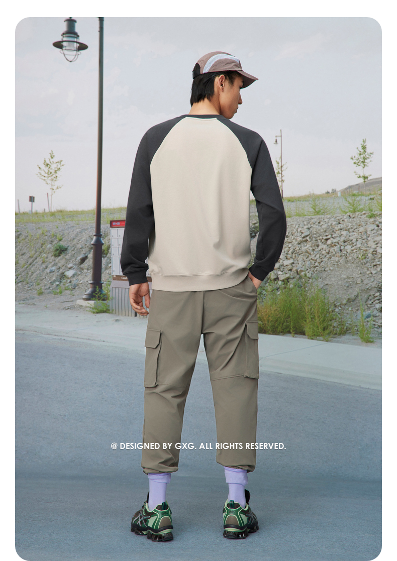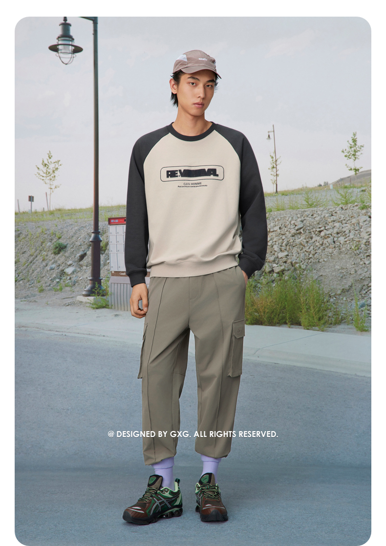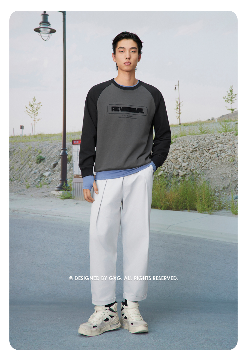 GXG男装 圆领字母印花撞色插肩袖卫衣长袖上衣 2025春季热卖