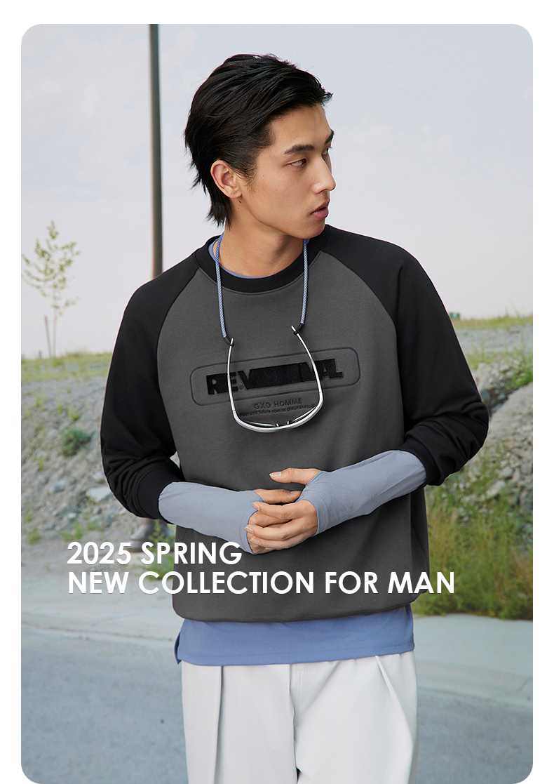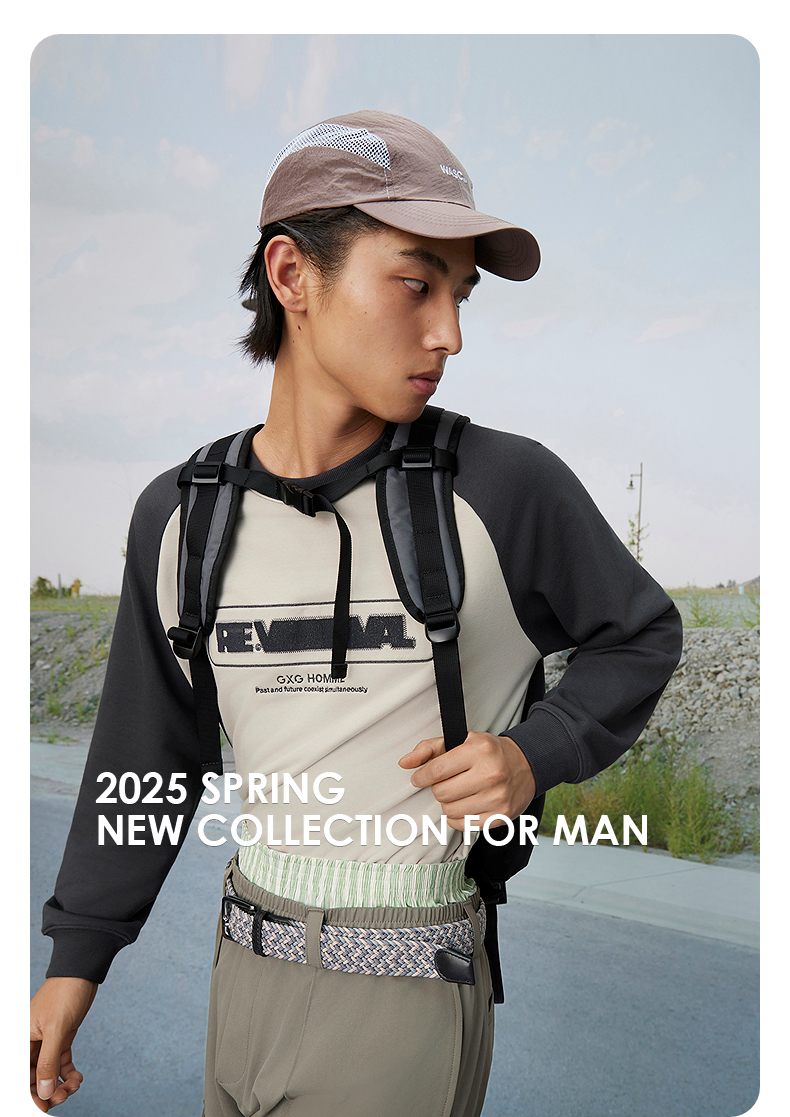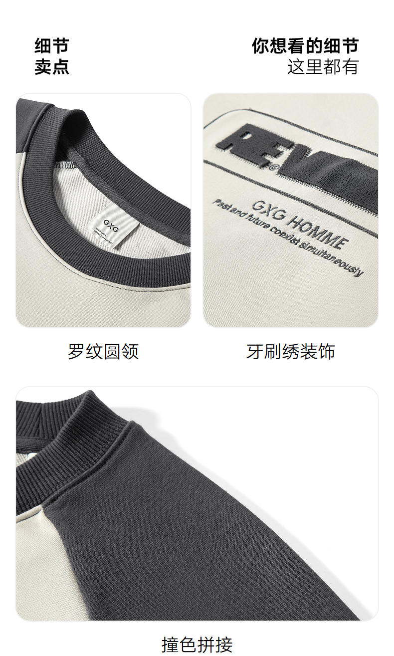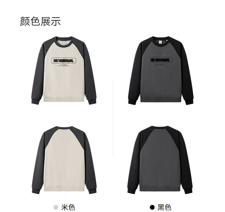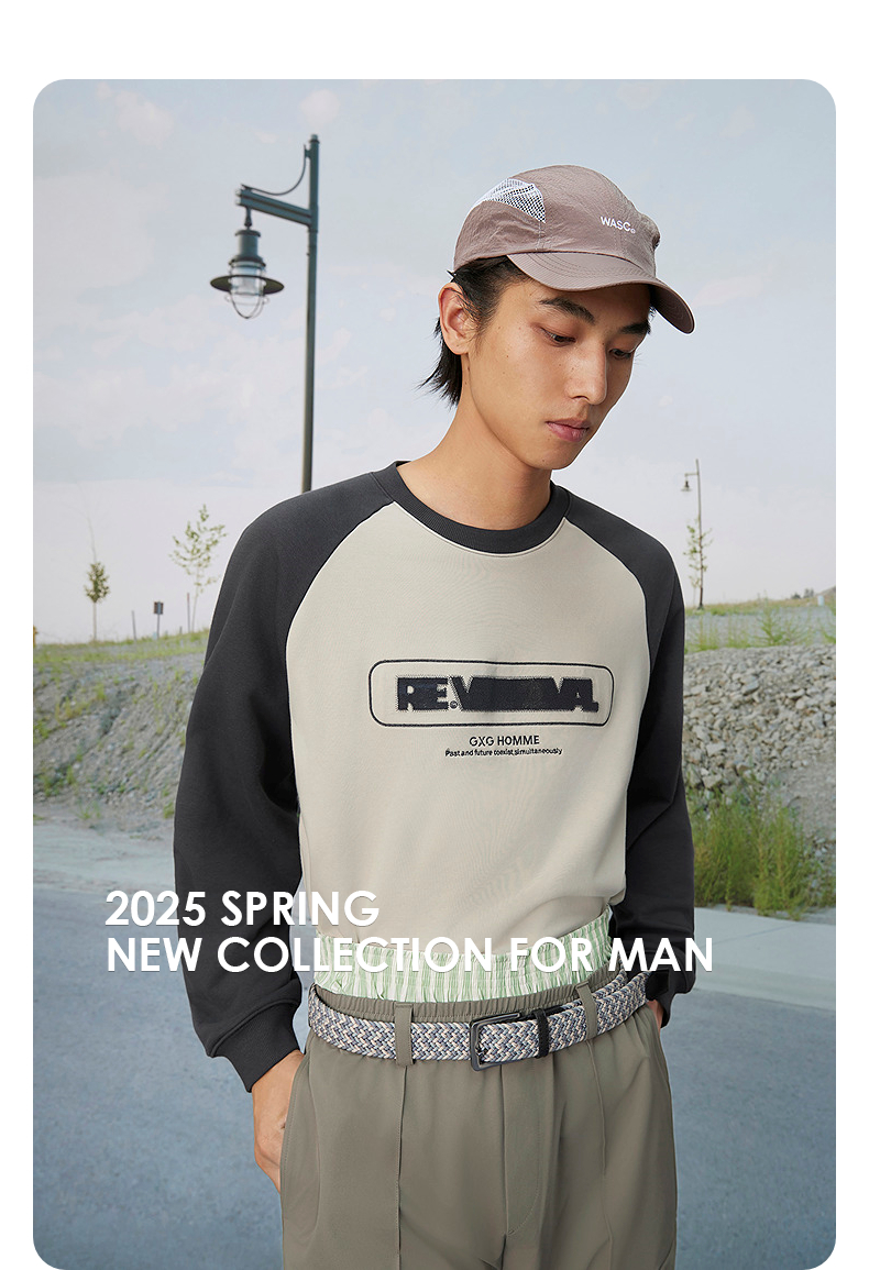 GXG男装 圆领字母印花撞色插肩袖卫衣长袖上衣 2025春季热卖