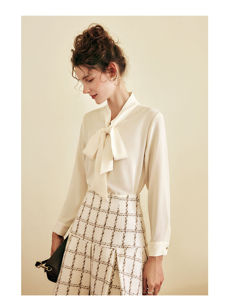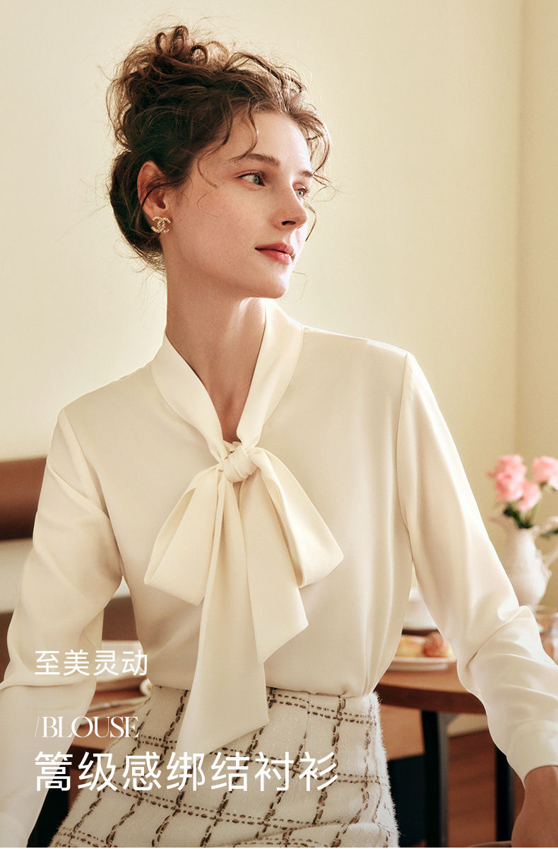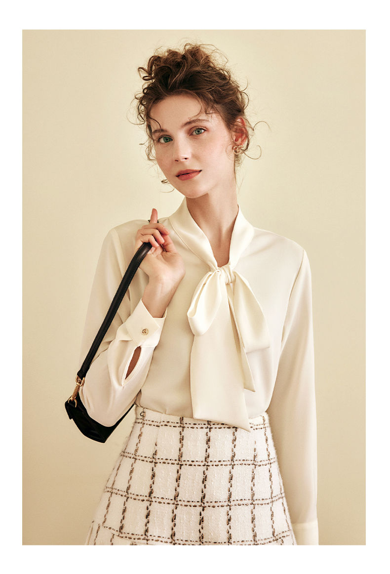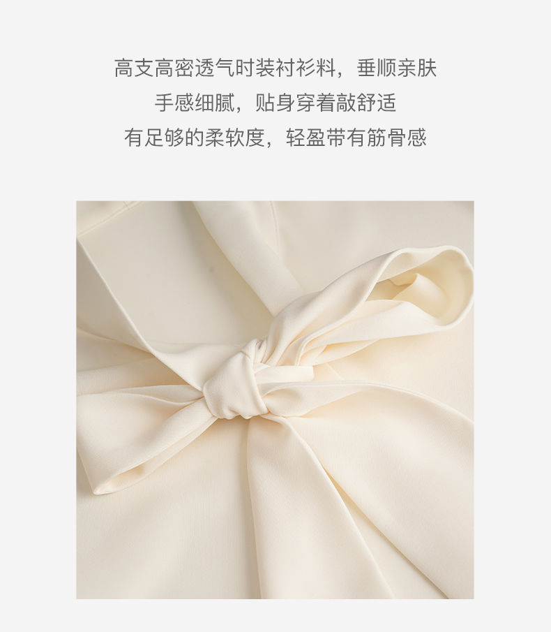 OLrain欧芮儿法式奶fufu雪纺衬衫女秋季2022新款高级感蝴蝶结衬衣