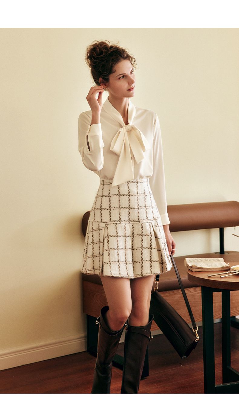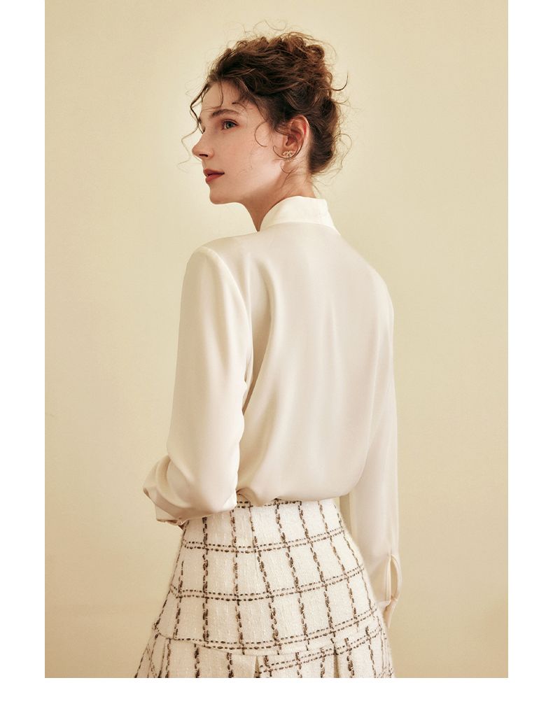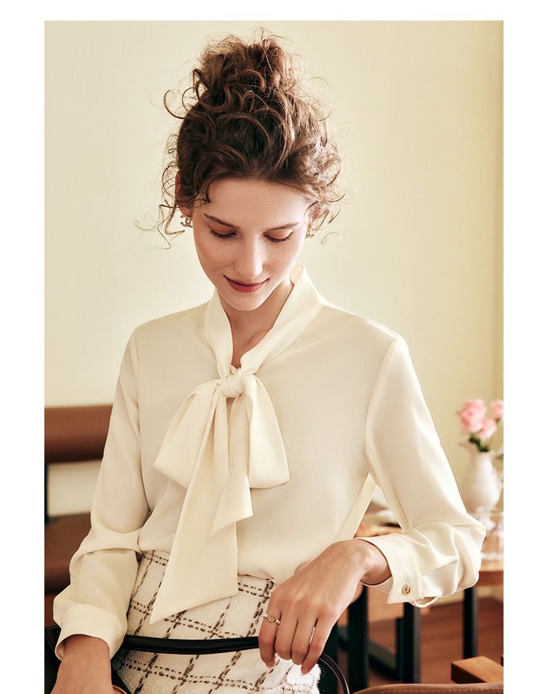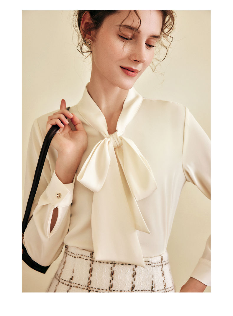 OLrain欧芮儿法式奶fufu雪纺衬衫女秋季2022新款高级感蝴蝶结衬衣