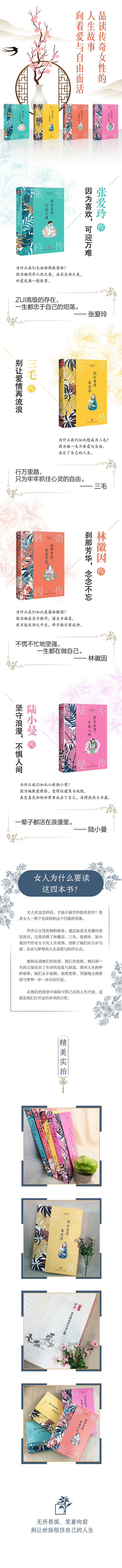 4. 陆小曼传、张爱玲传、林徽因传、三毛传四本一齐推出,品读她们的故事,执掌自己的人生。从温柔的字里行间,可看到她们面对人间烟火中来自生命的重重考验,依旧向着爱与自由而活。