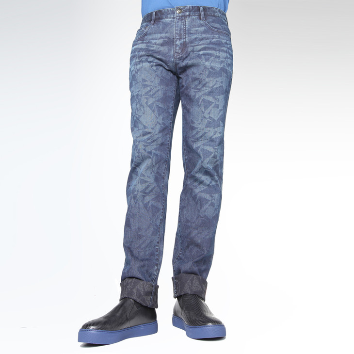 Marco Azzali 蓝色几何印花牛仔裤 P3902600