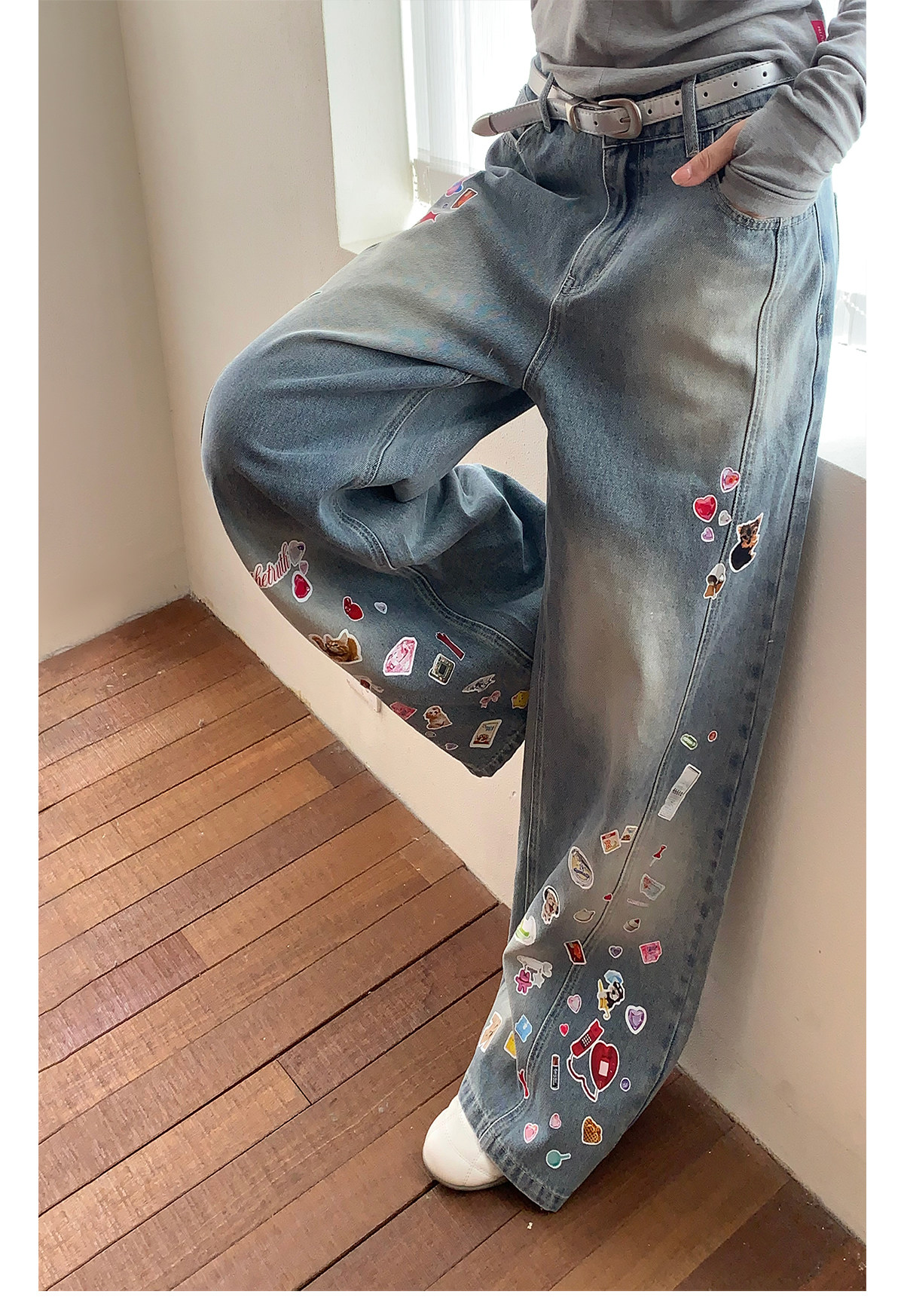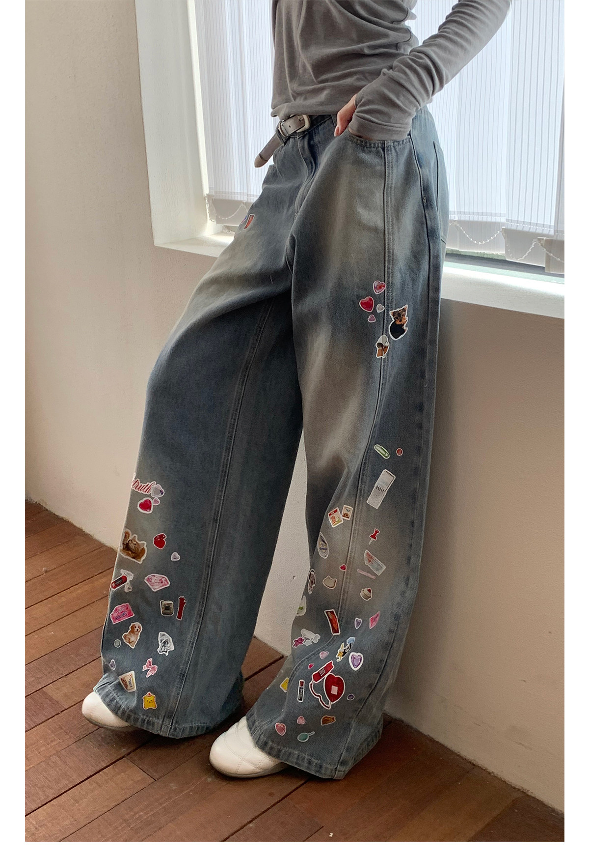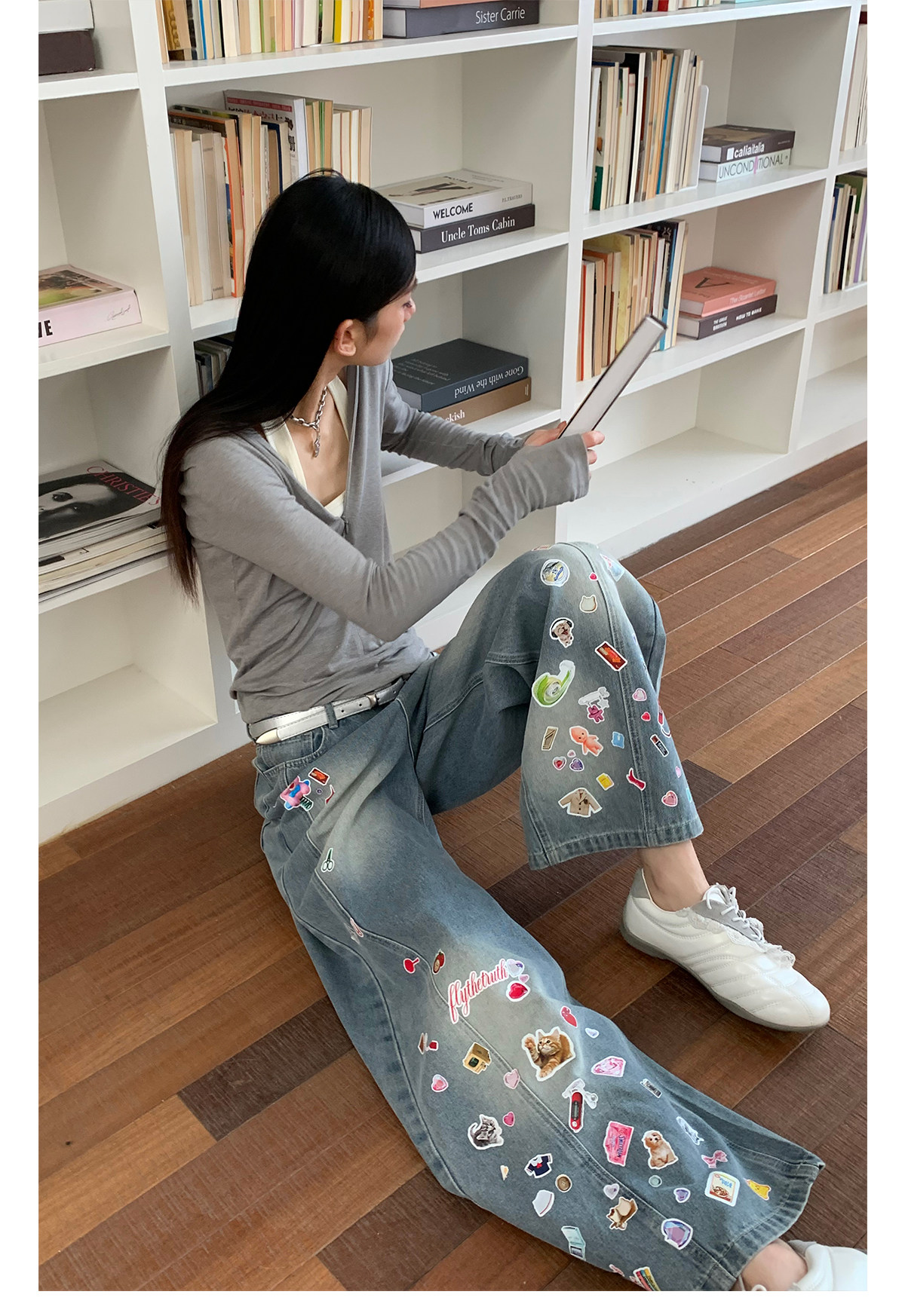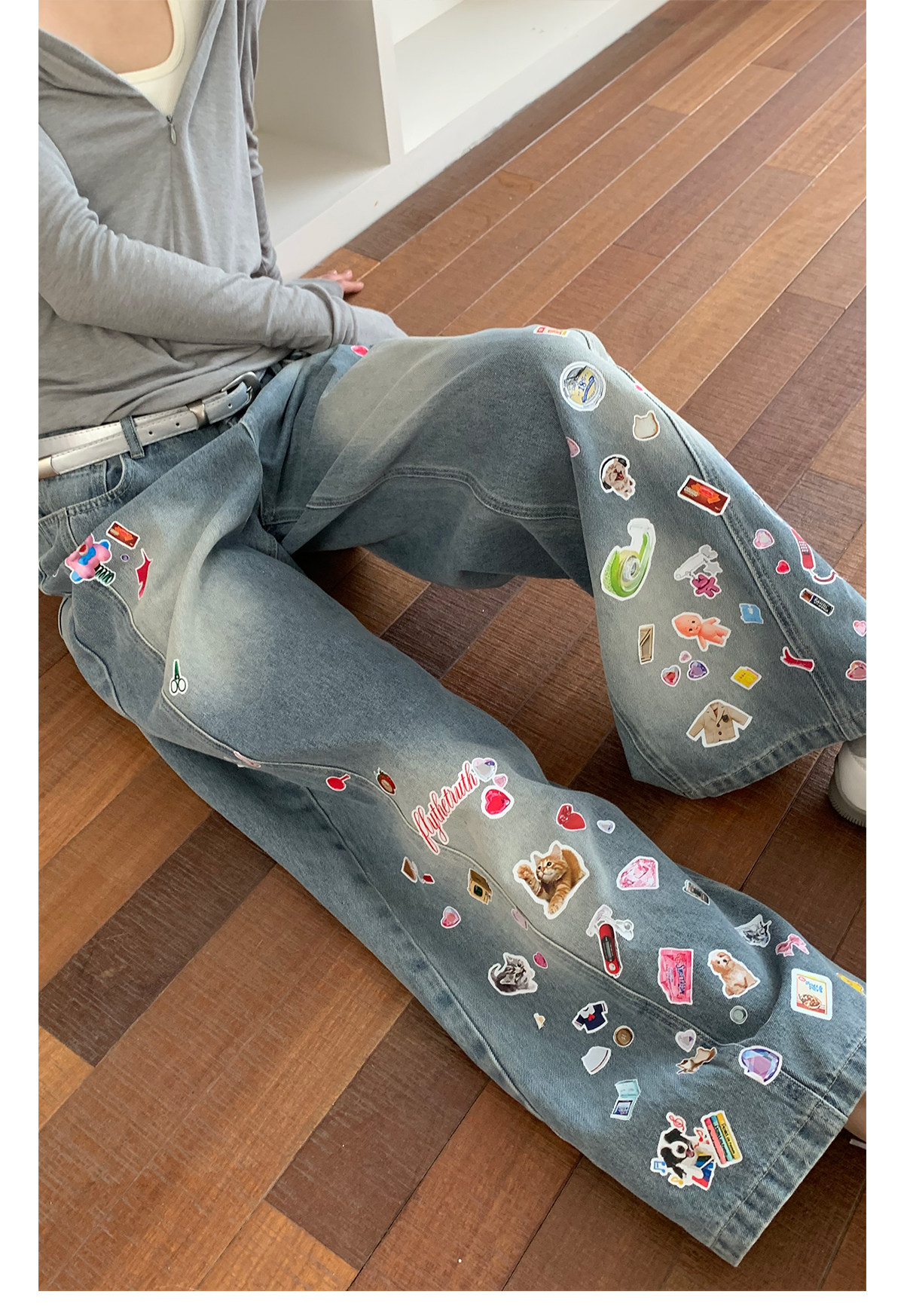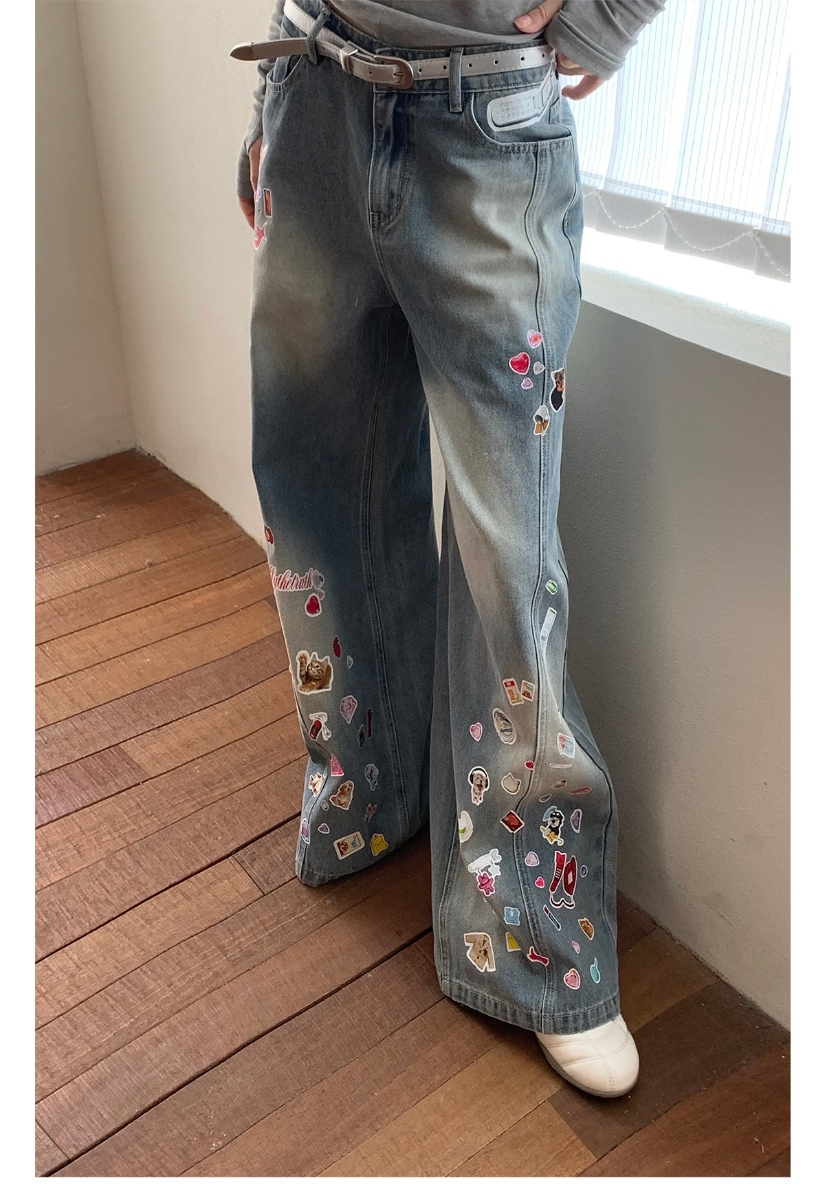 FTT FlyTheTruth『西部乐园』 卡通贴纸牛仔裤女秋季美式复古长裤
