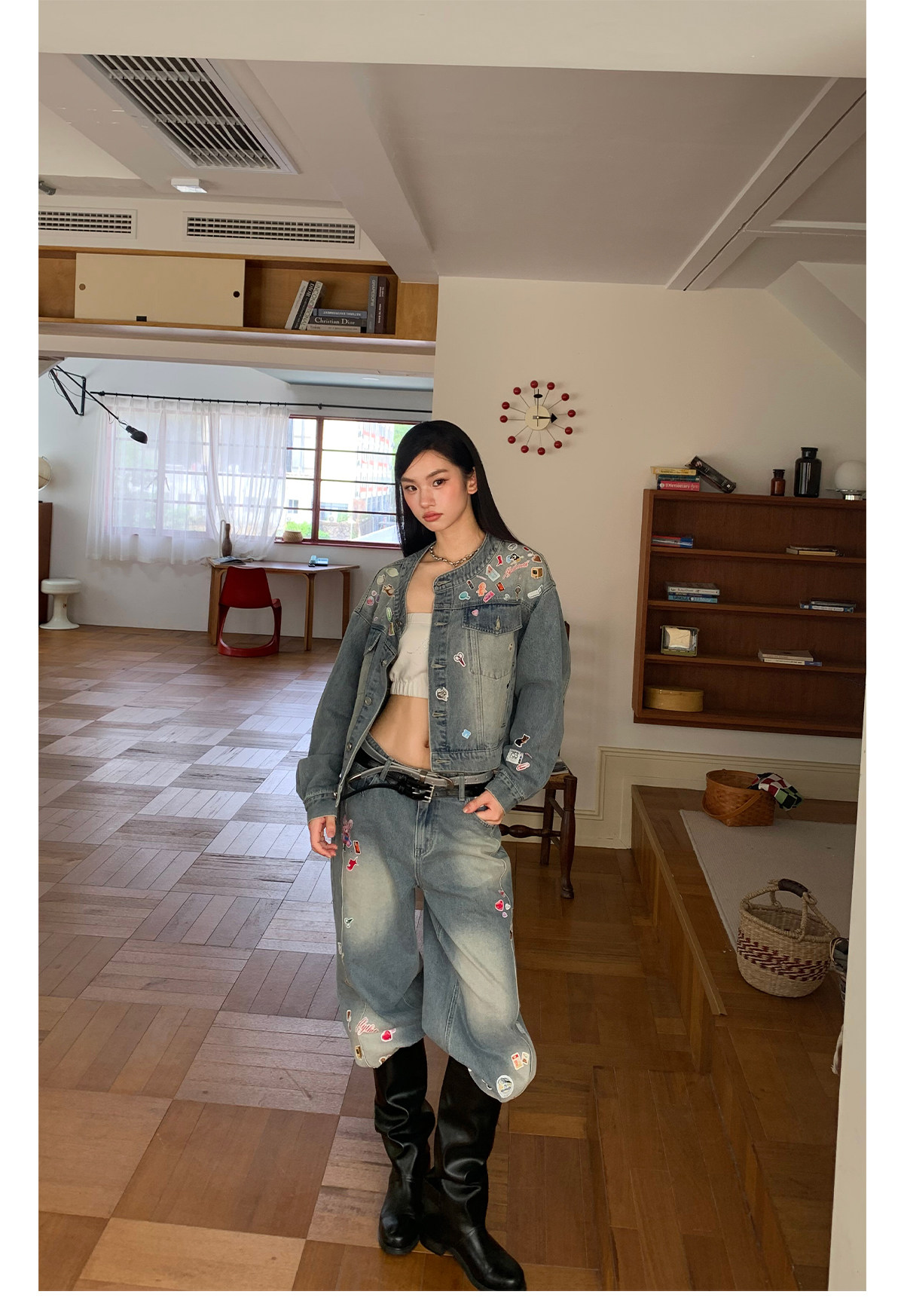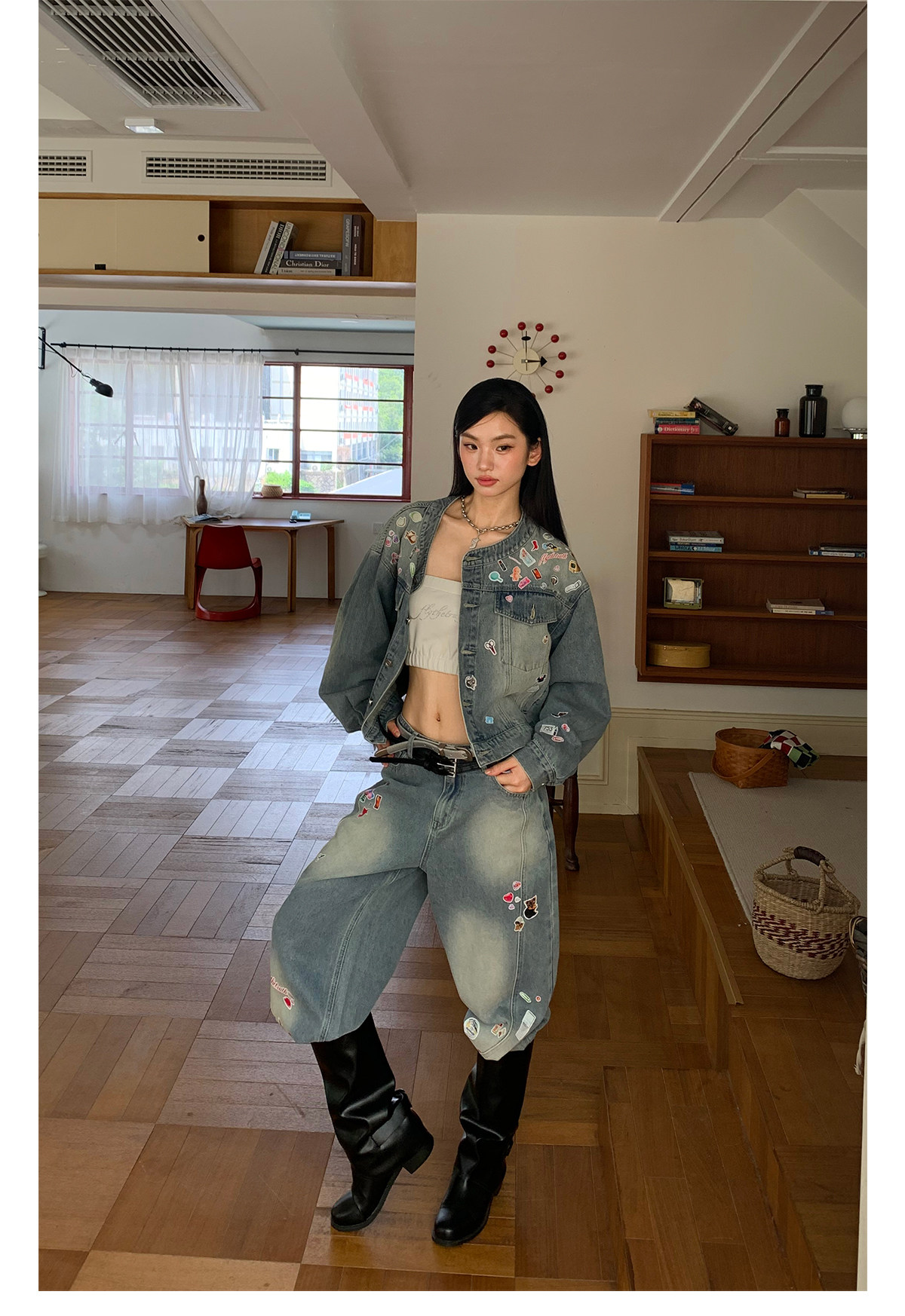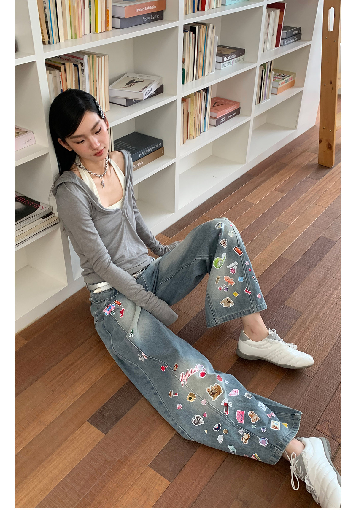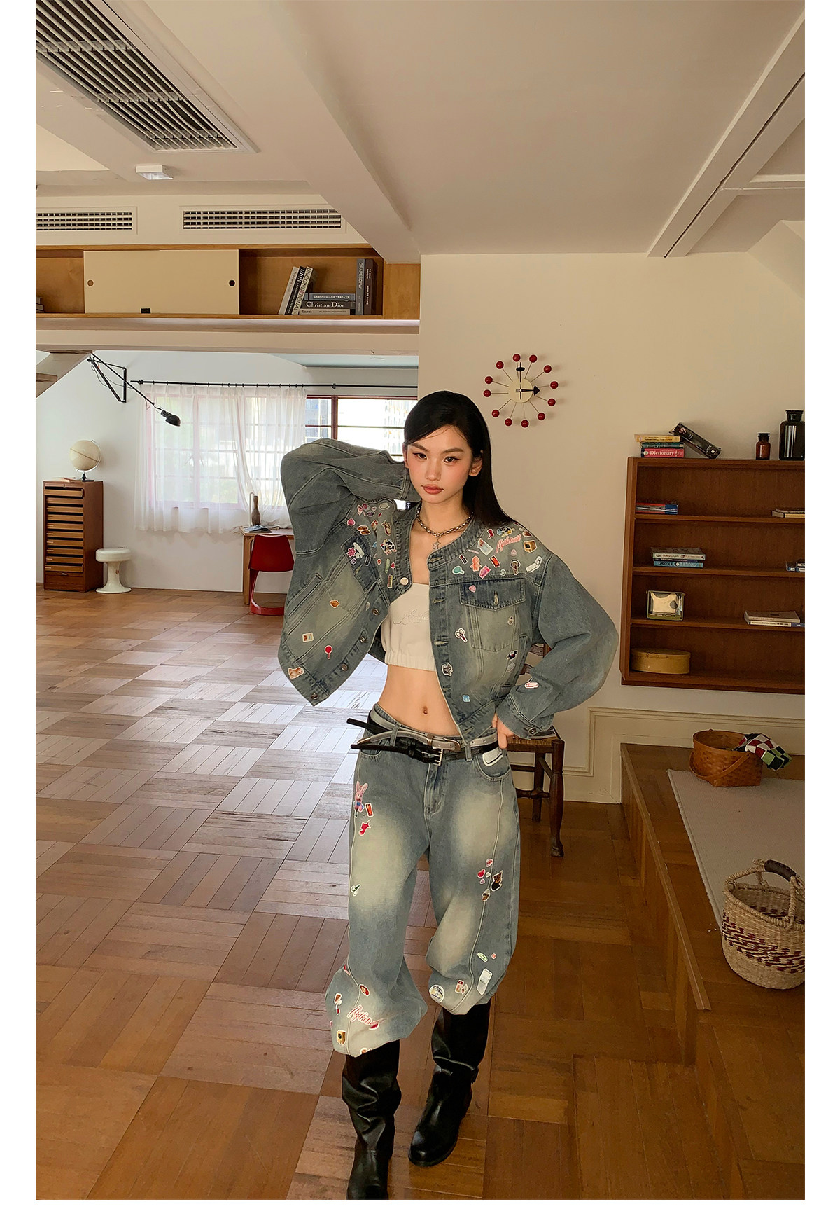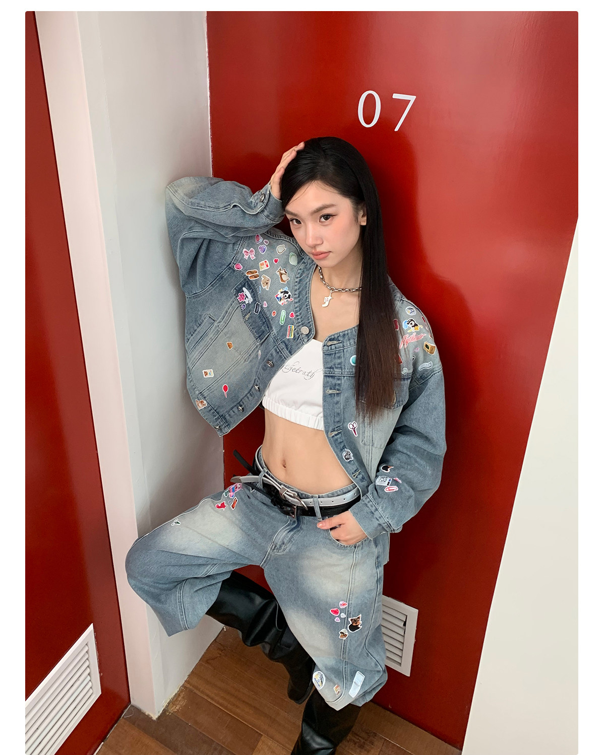 FTT FlyTheTruth『西部乐园』 卡通贴纸牛仔裤女秋季美式复古长裤