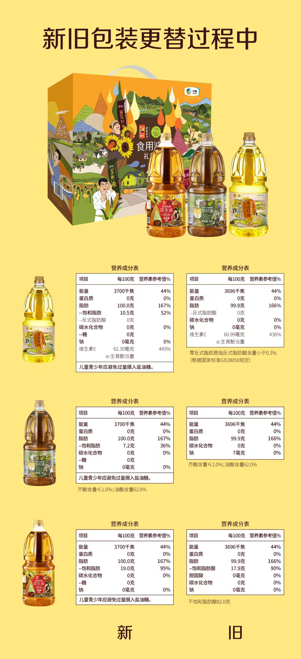 中粮初萃食用油礼盒1.8L*3(花生油+葵花籽油/零反葵随机+菜籽油)