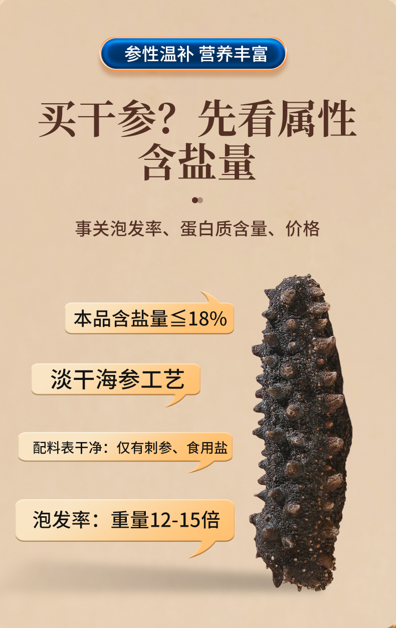 睿源堂大连淡干海参500g(71-100头)
