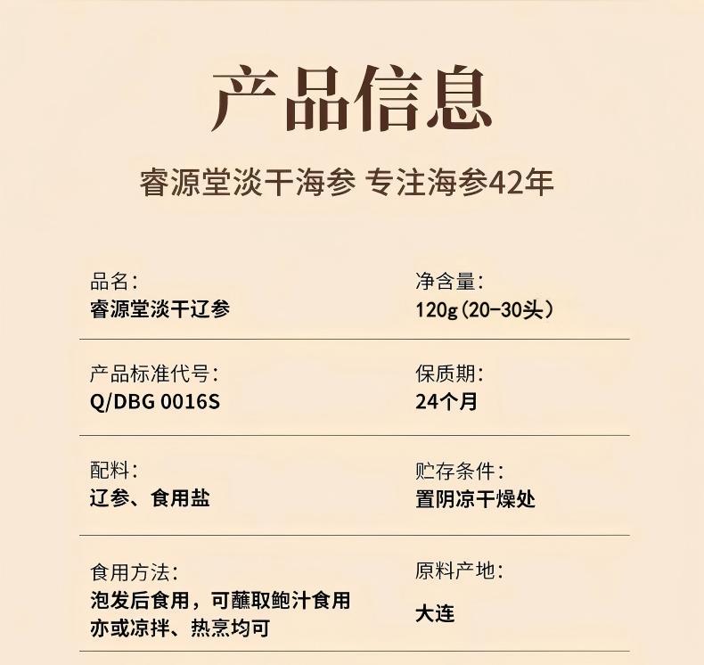 睿源堂大连淡干海参120g(20-30头)