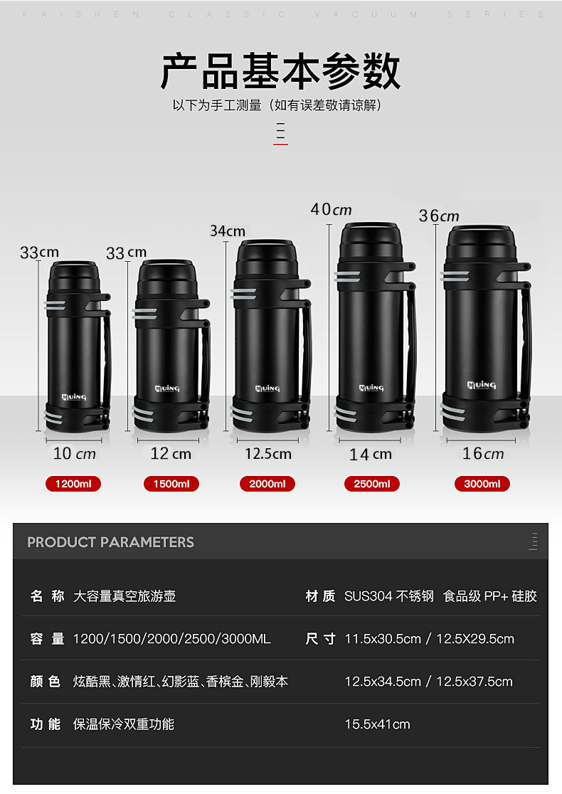 304不锈钢保温壶户外大容量保温杯男女便携车载旅行水壶家用暖瓶