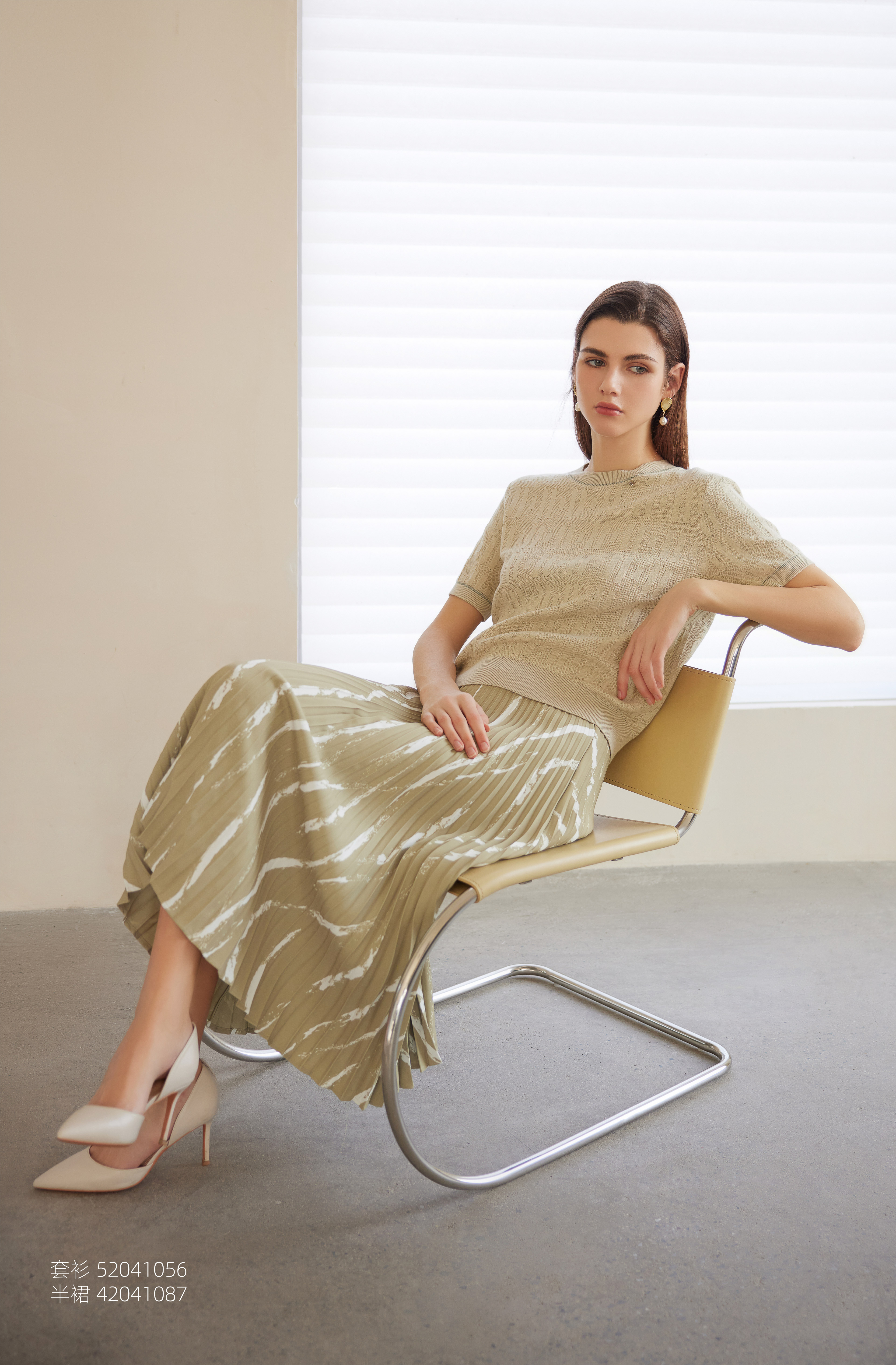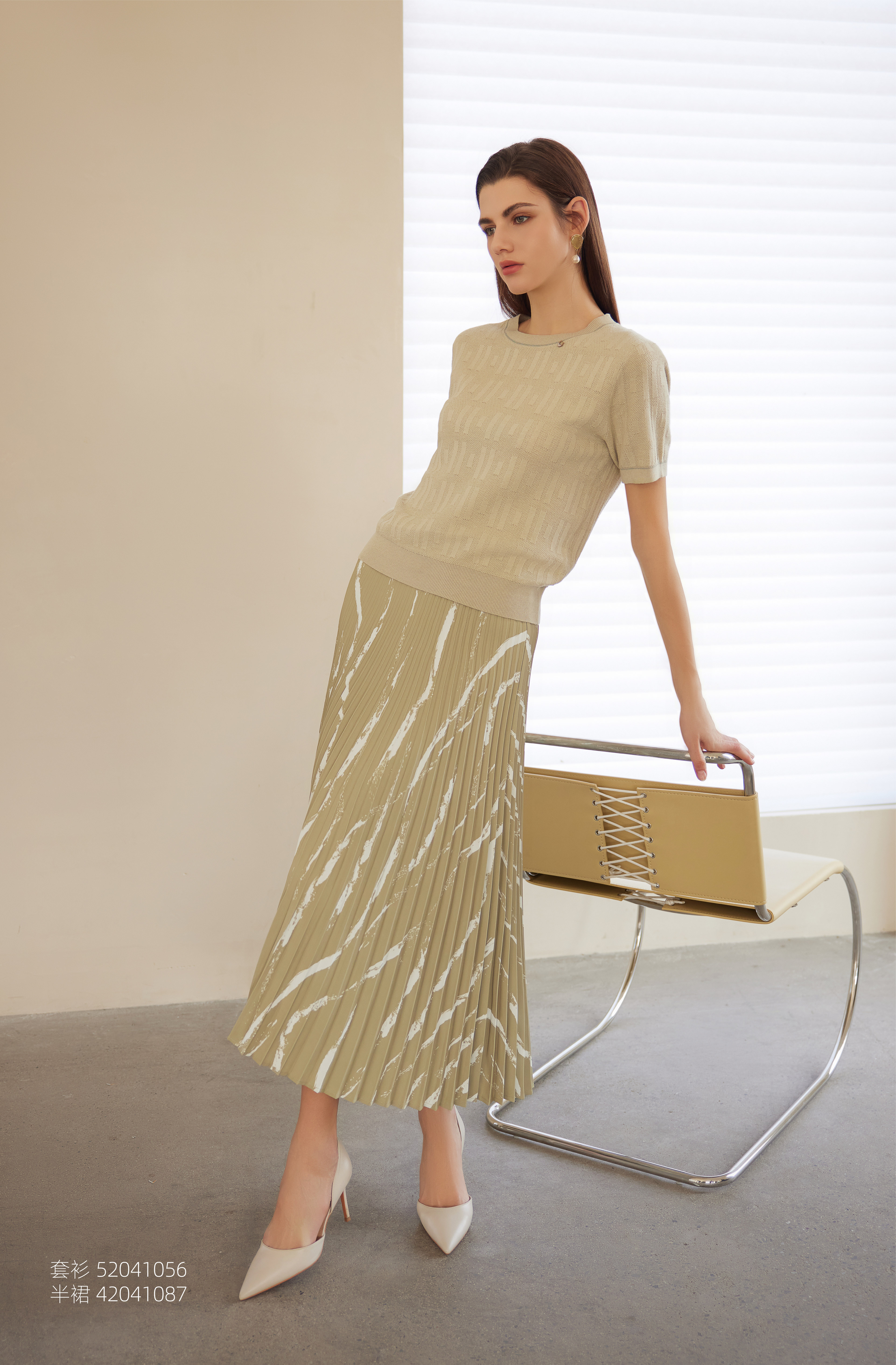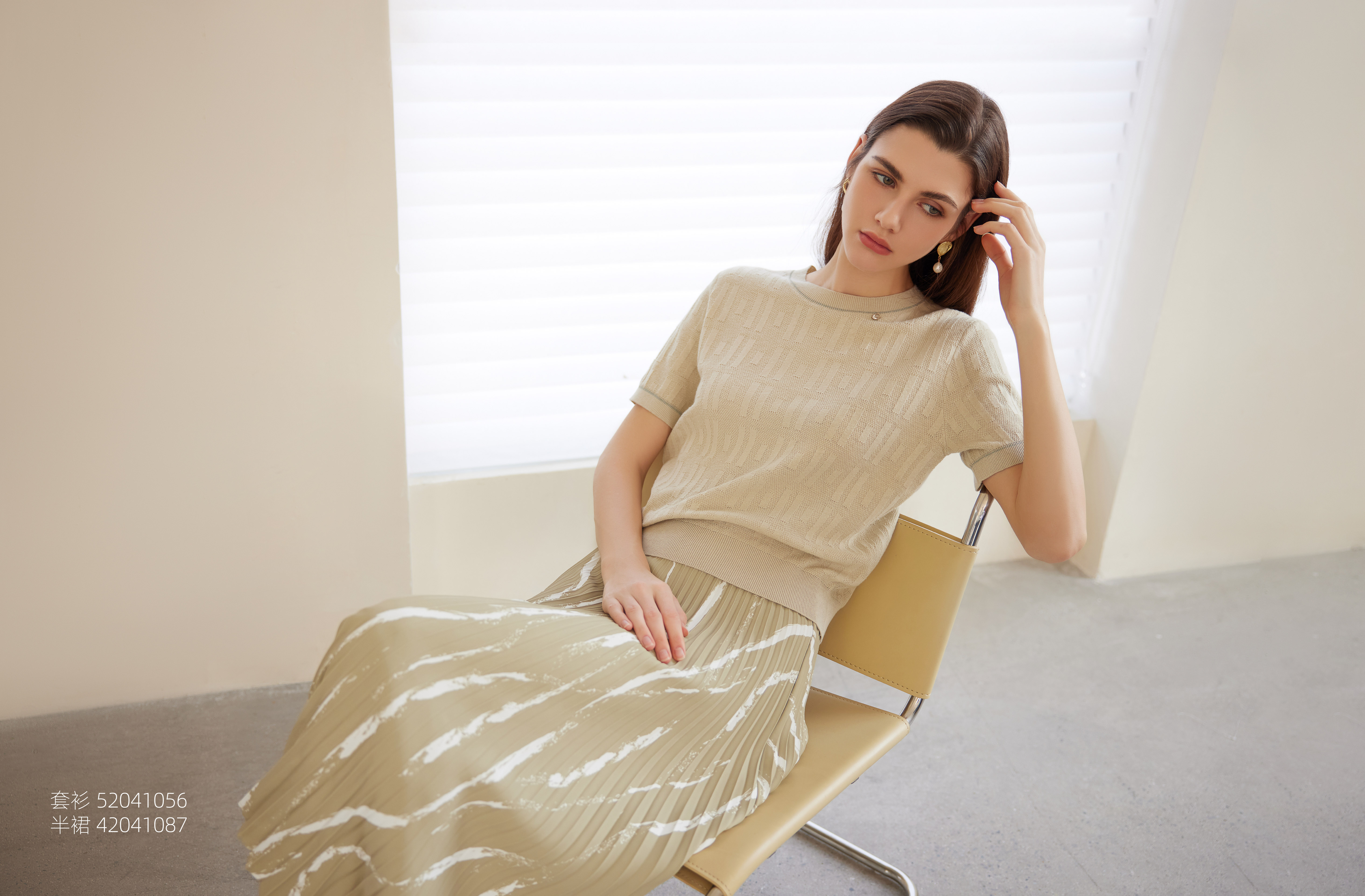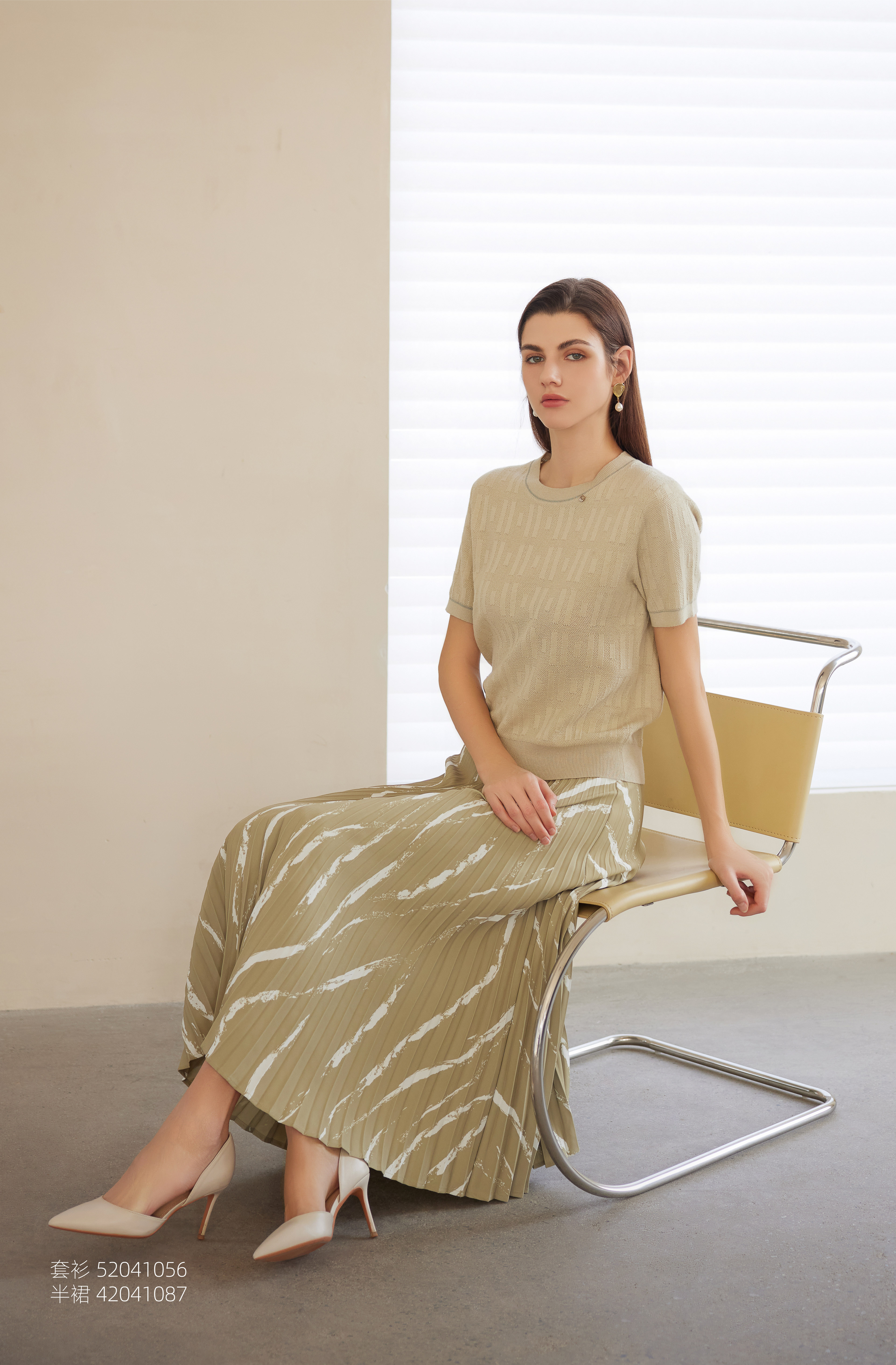 【棉麻短袖针织套衫】24年春夏新品圆领套头衫时尚立体条纹针织衫