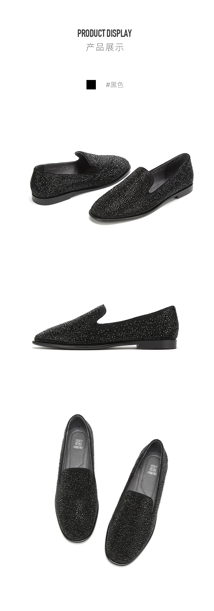 西村名物2021春季新款套脚休闲真皮水钻珍珠圆头时尚单鞋女X21AM11451