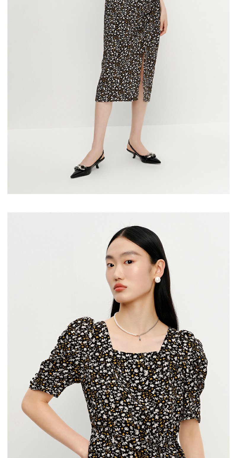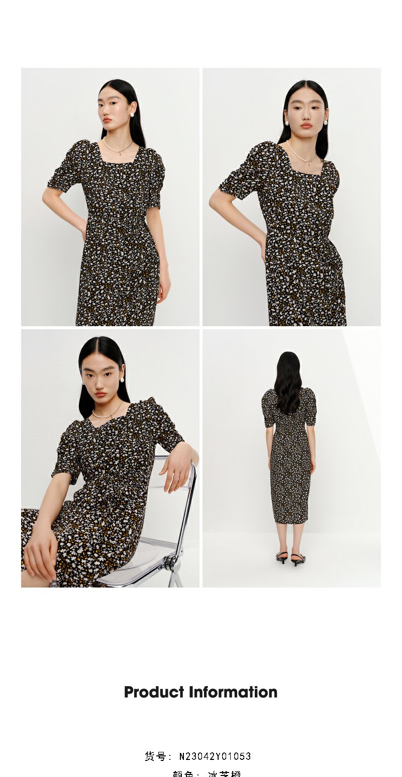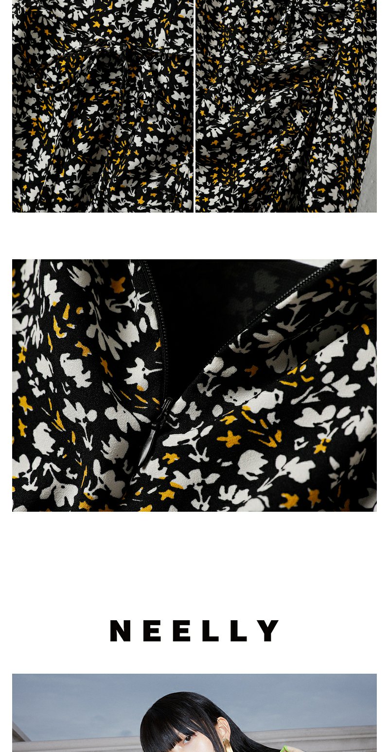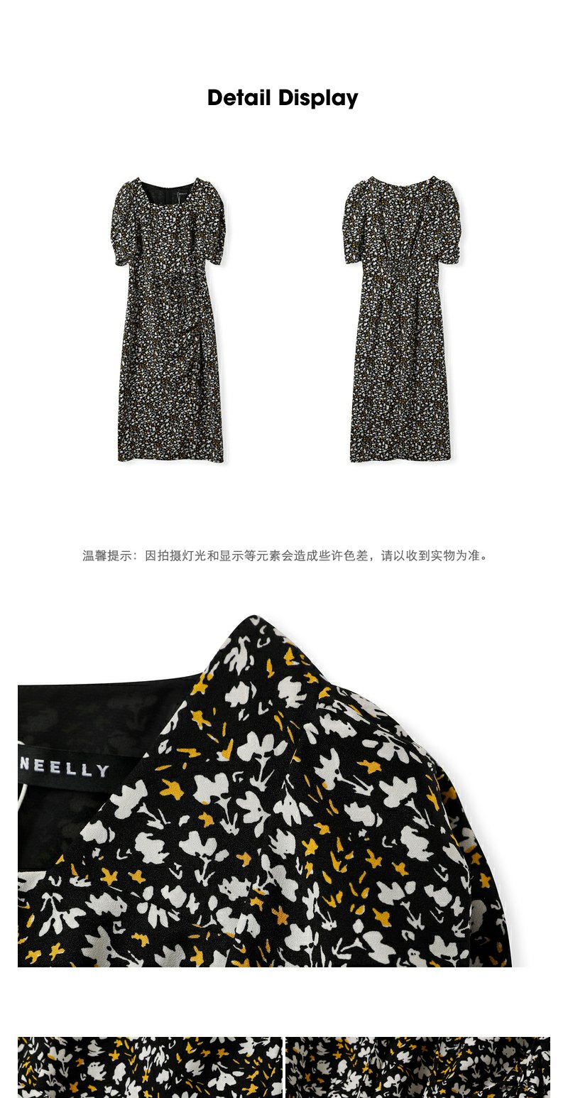 NEELLY纳俪商场同款夏季碎花连衣裙女方领显瘦收腰A字裙下开叉裙N23042Y01