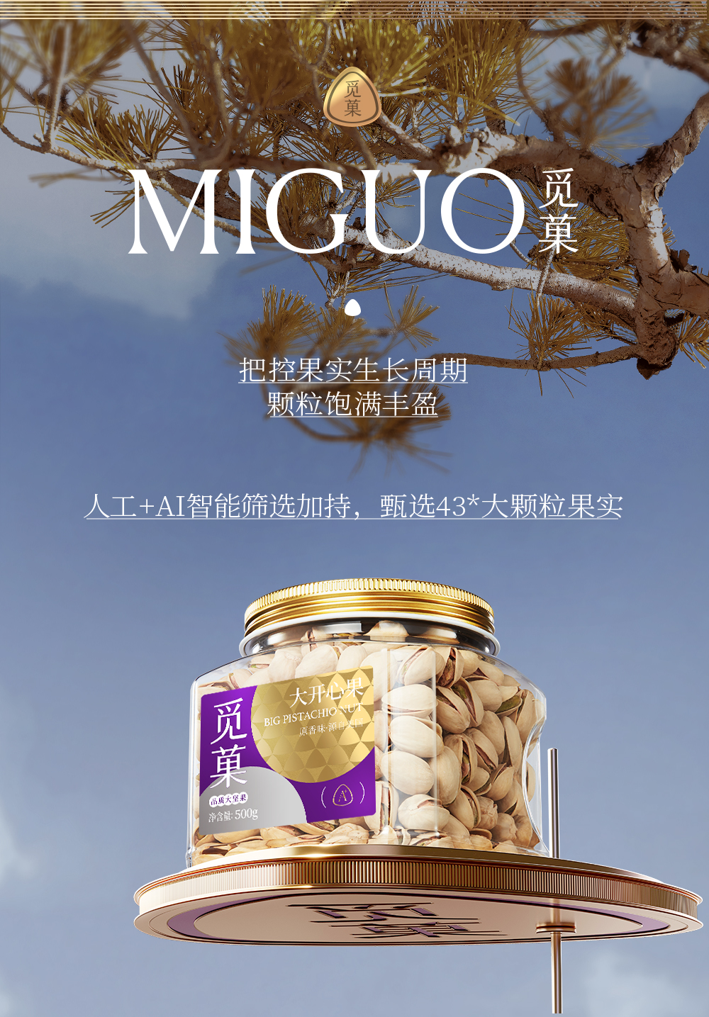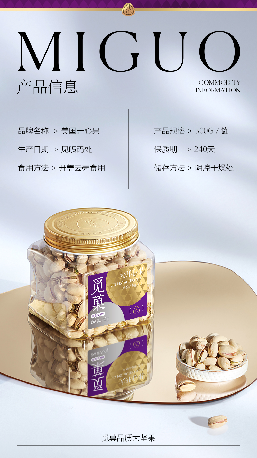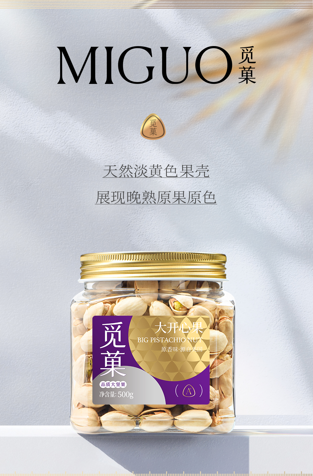 【云优选】觅菓A+大开心果大颗粒美国新货无漂白原味干果坚果零食年货500g(拆封后不支持7天无理由退货,介意慎拍!)