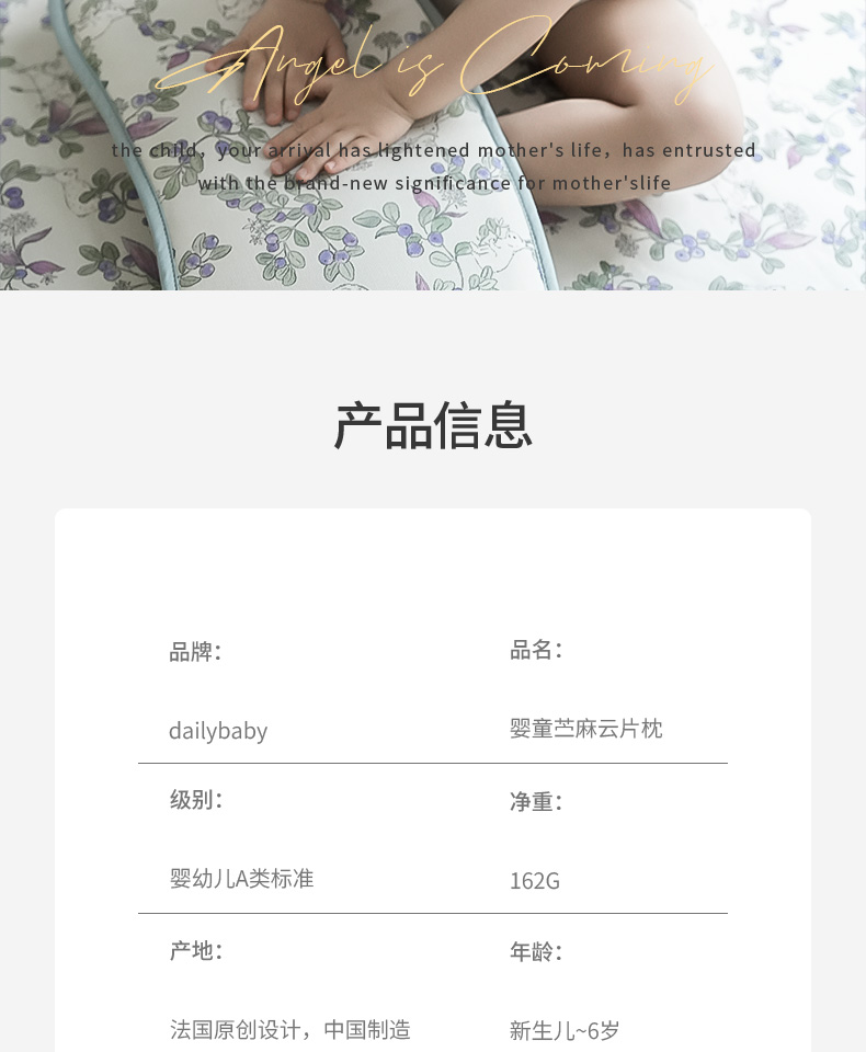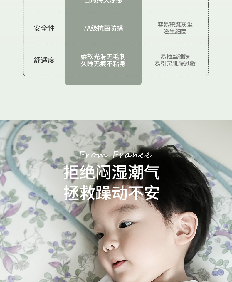 【云优选】法国DailyBaby婴儿枕头宝宝云片枕新生儿凉席枕莱赛尔苎麻凉枕夏