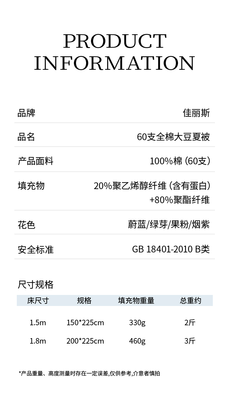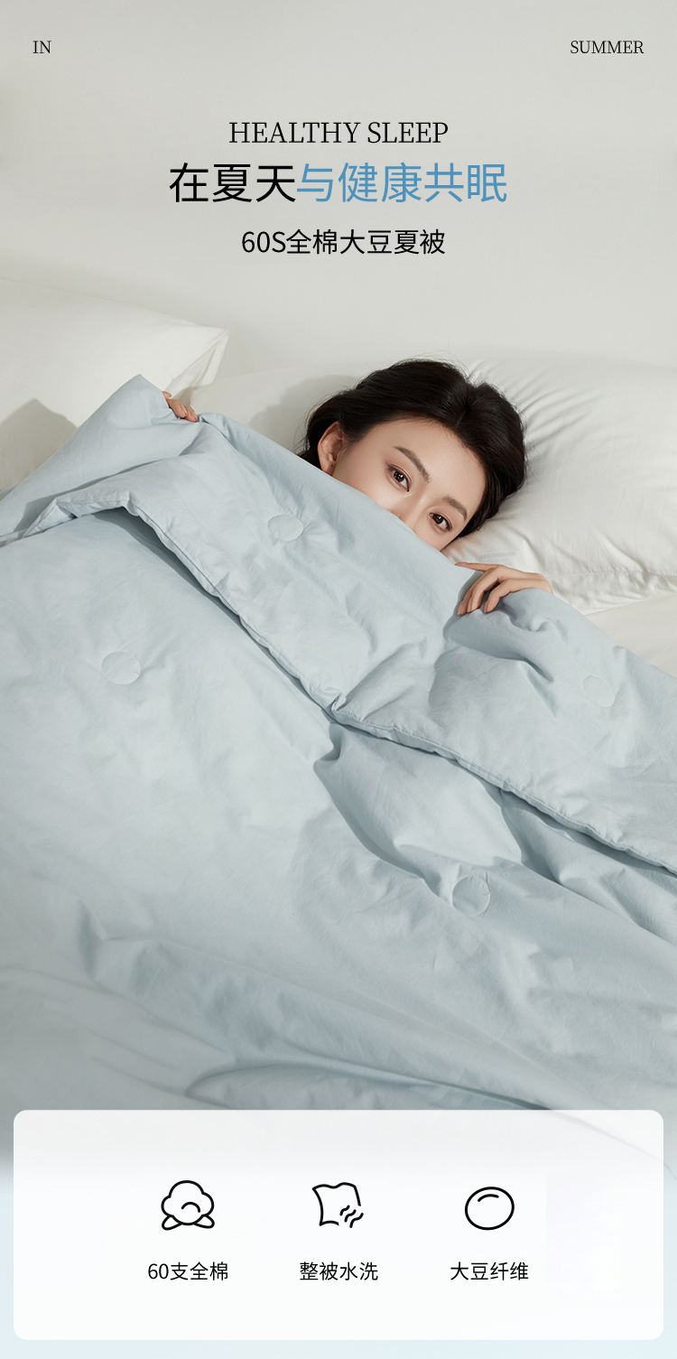 【预售-4月13日配送】佳丽斯60支全棉大豆夏被(蔚蓝)/1件(200*225cm,填充物重约460g,总重约1.5kg)