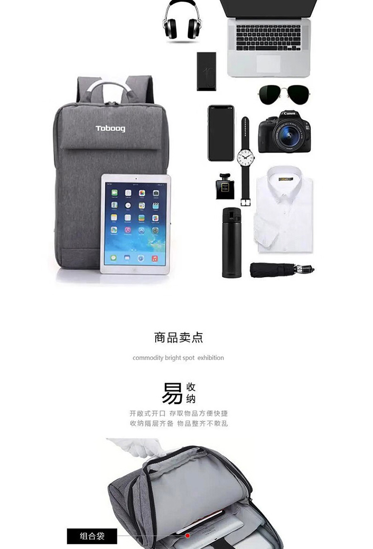 Toboog途帮 休闲双肩背包15寸 TB8188 灰色