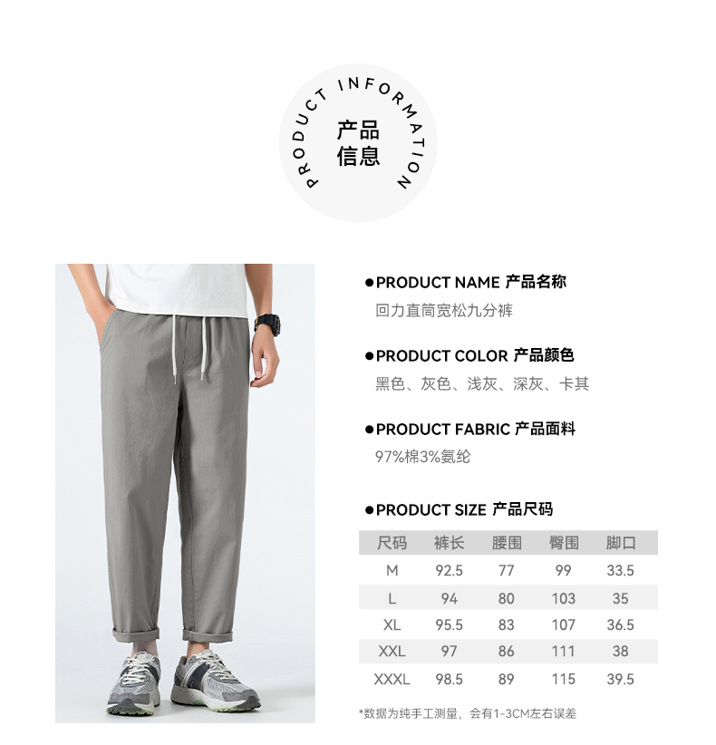 回力纯棉休闲裤男士夏季薄款2025新款宽松直筒裤子男百搭锥形长裤