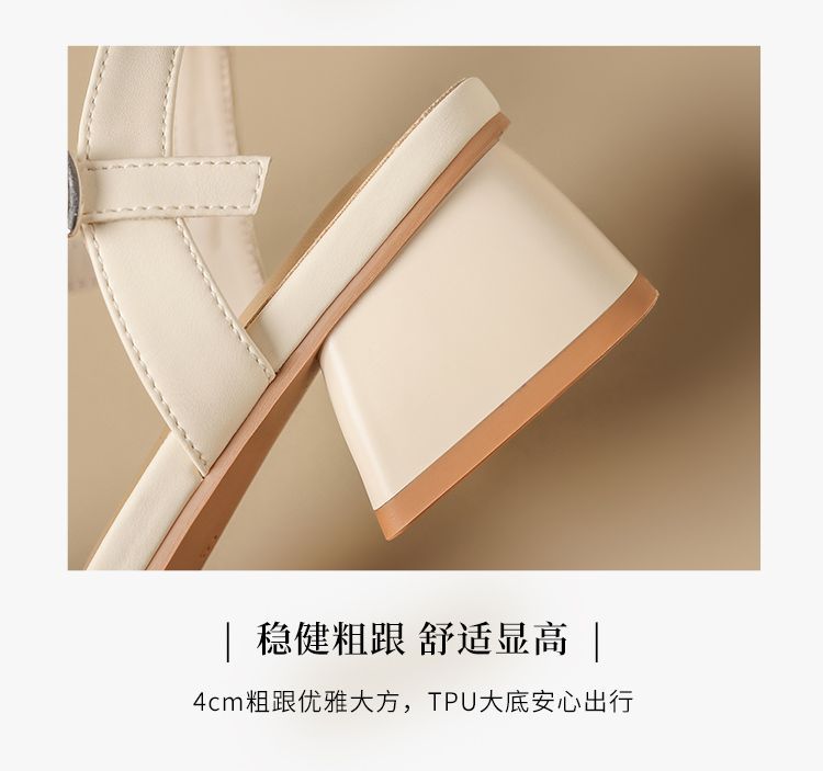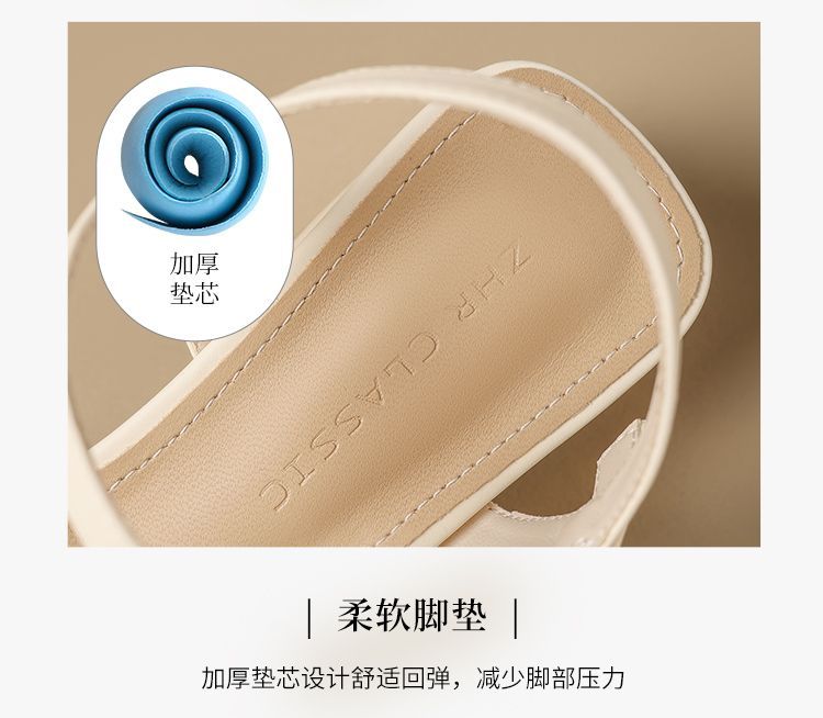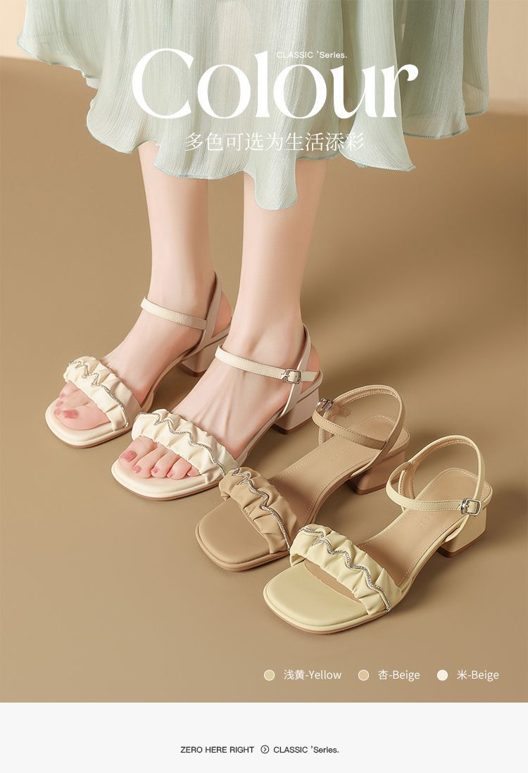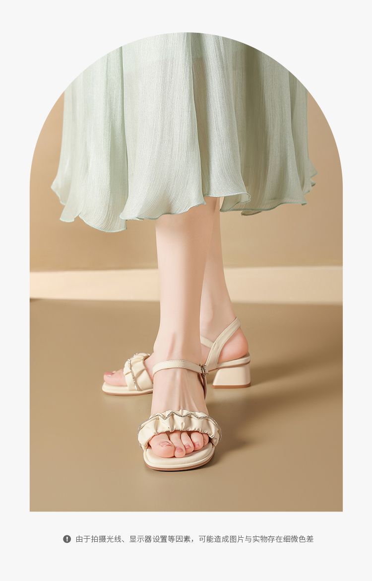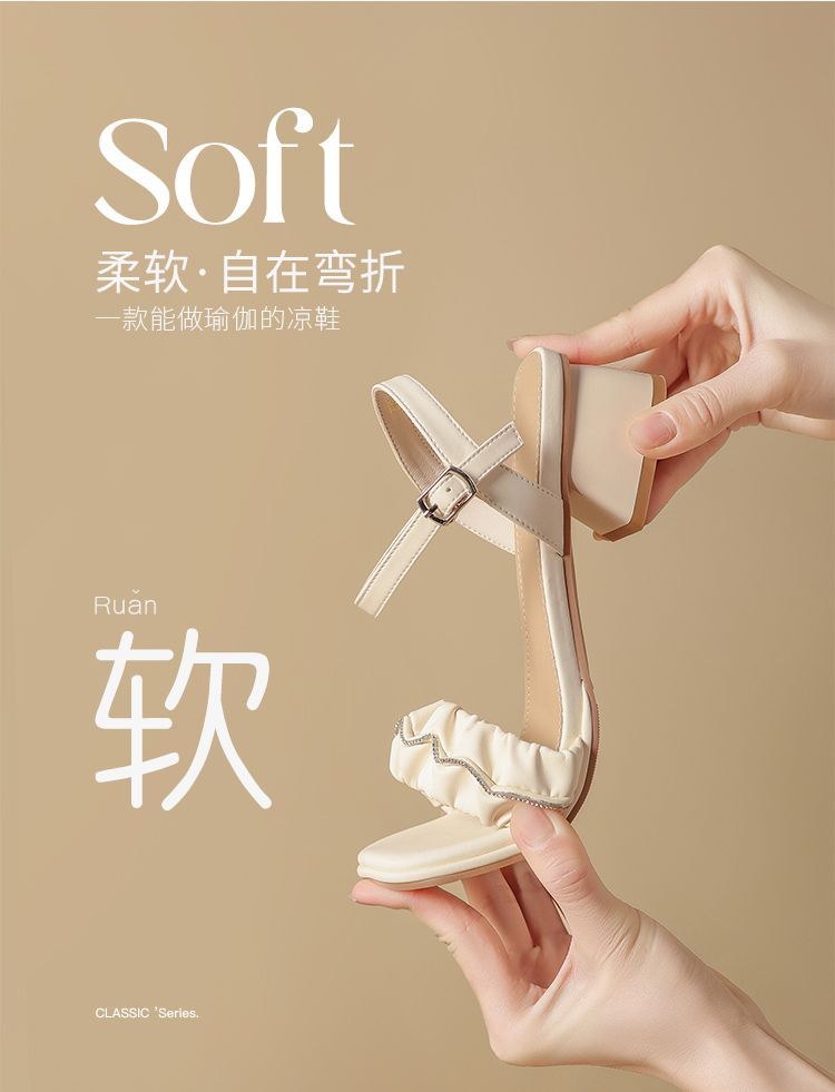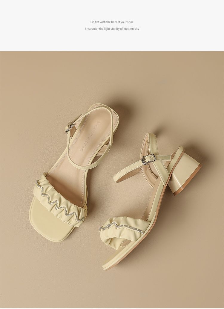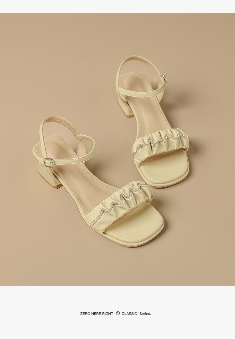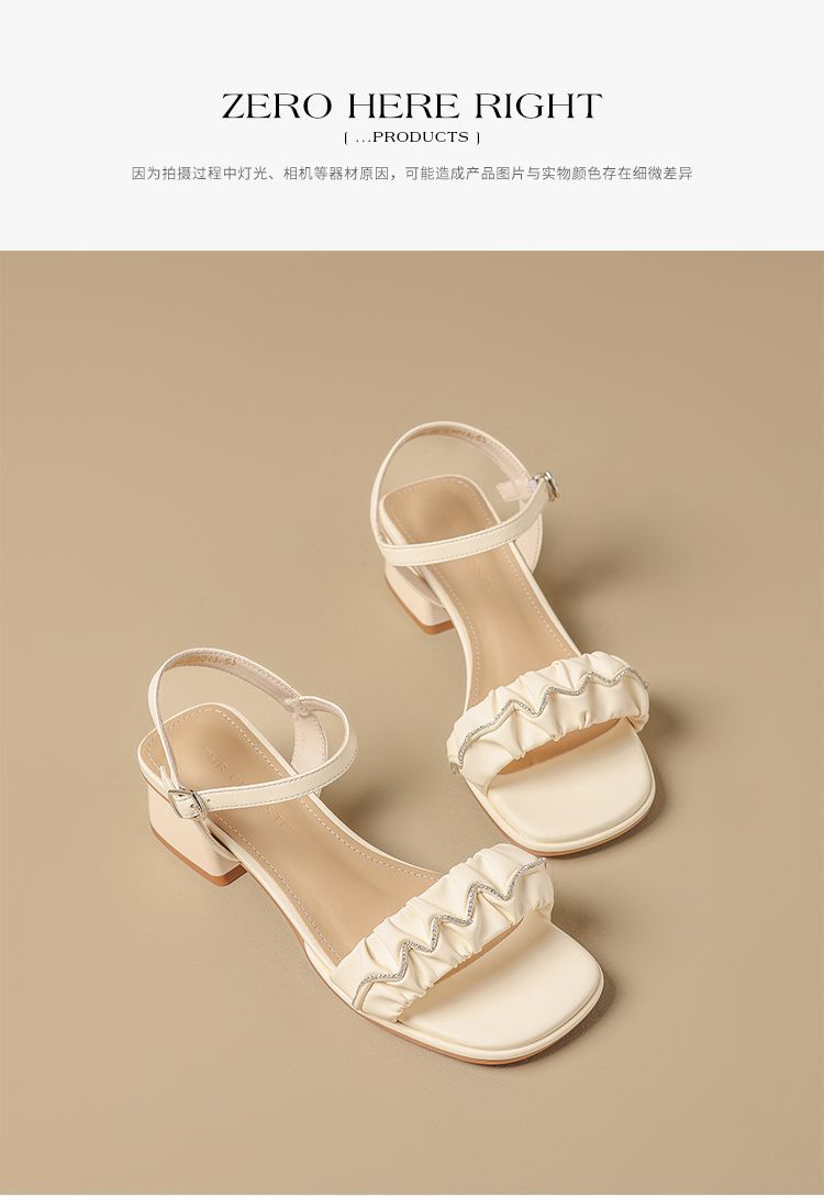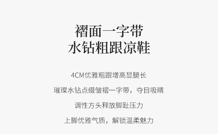 ZHR则则一字带水钻粗跟凉鞋女2025夏季新款优雅柔软显高粗跟凉鞋