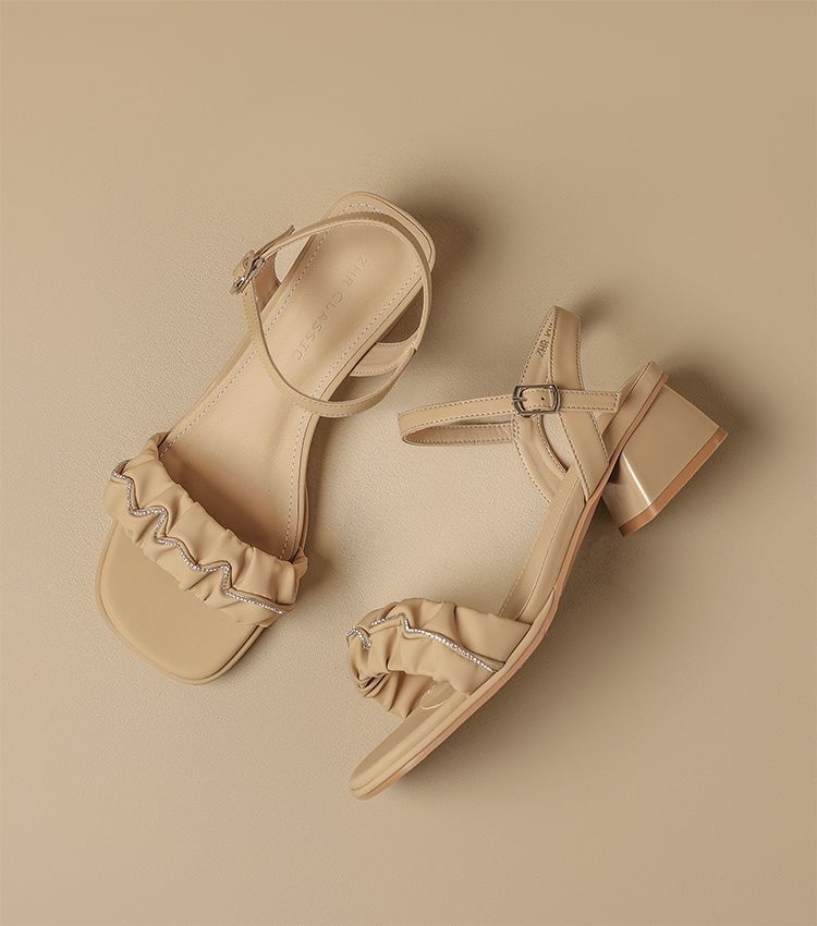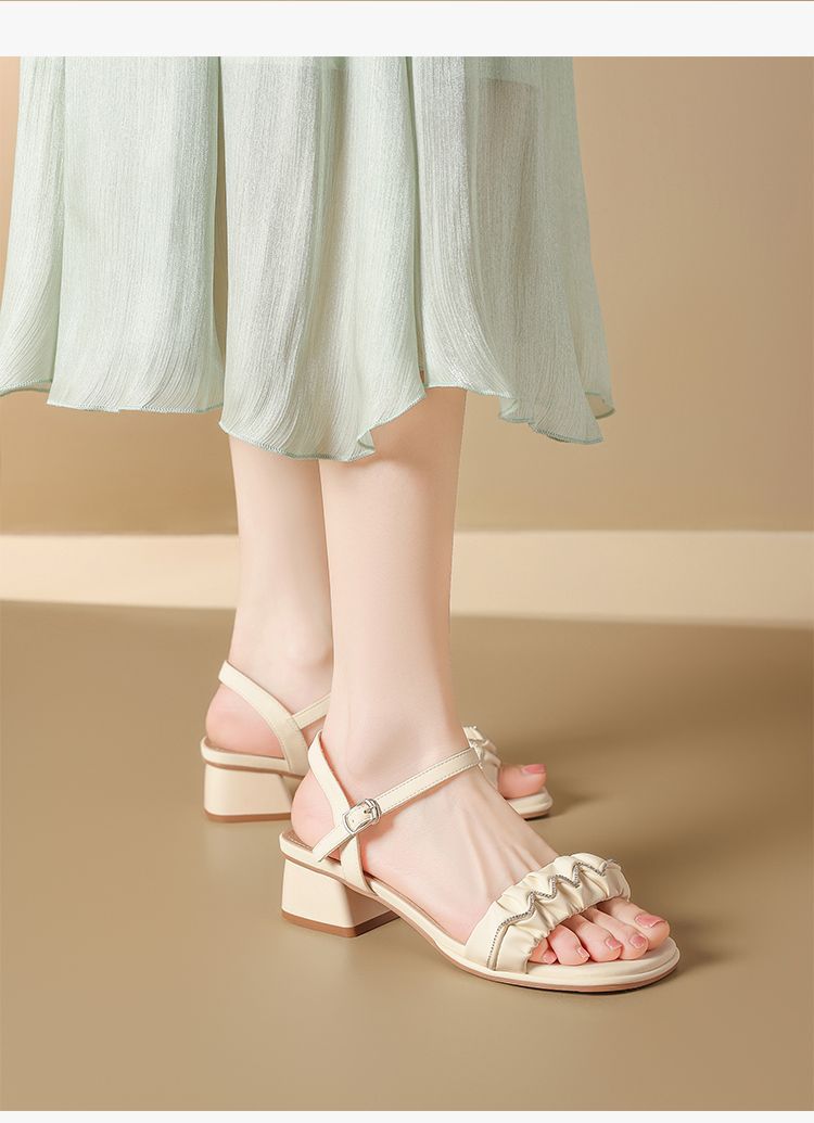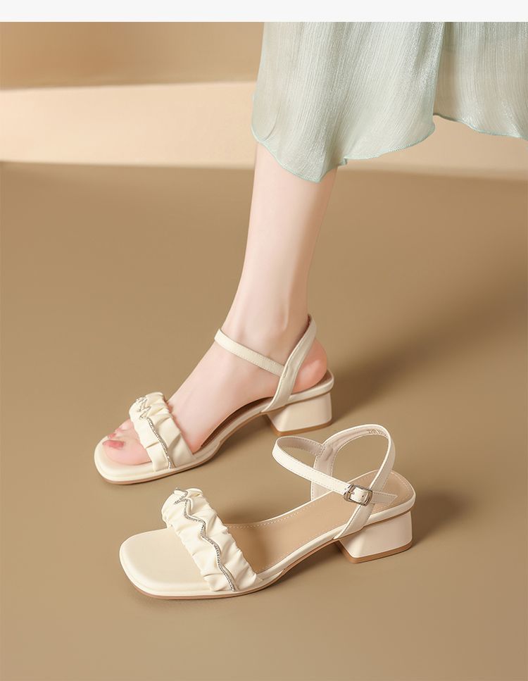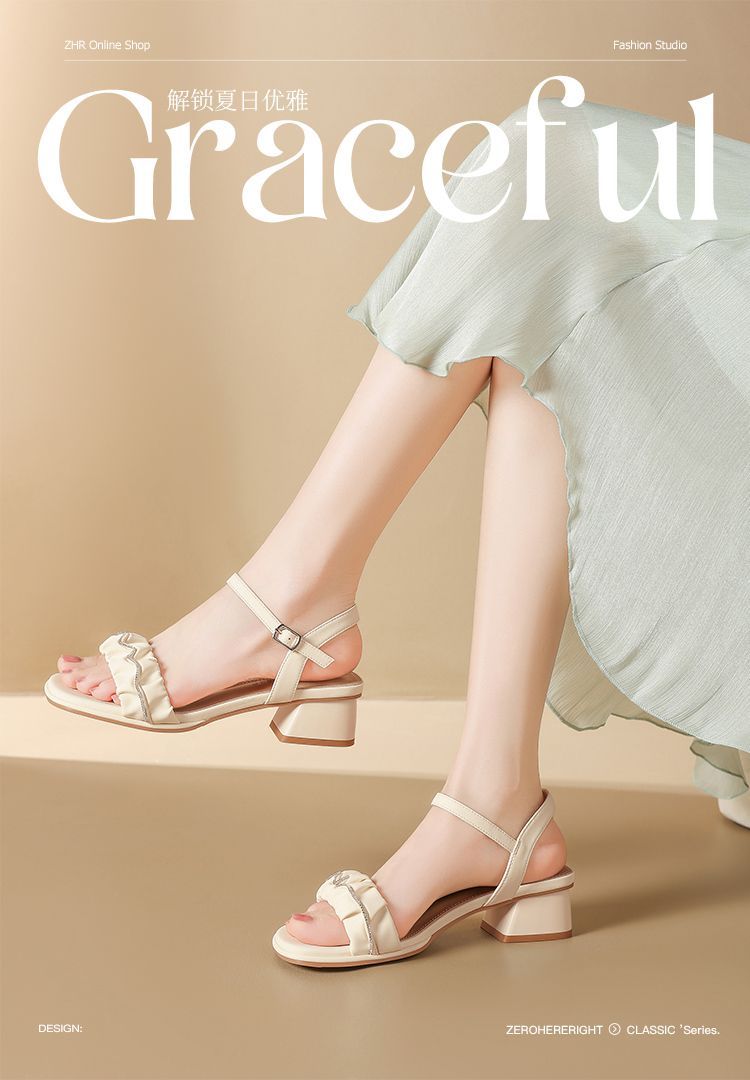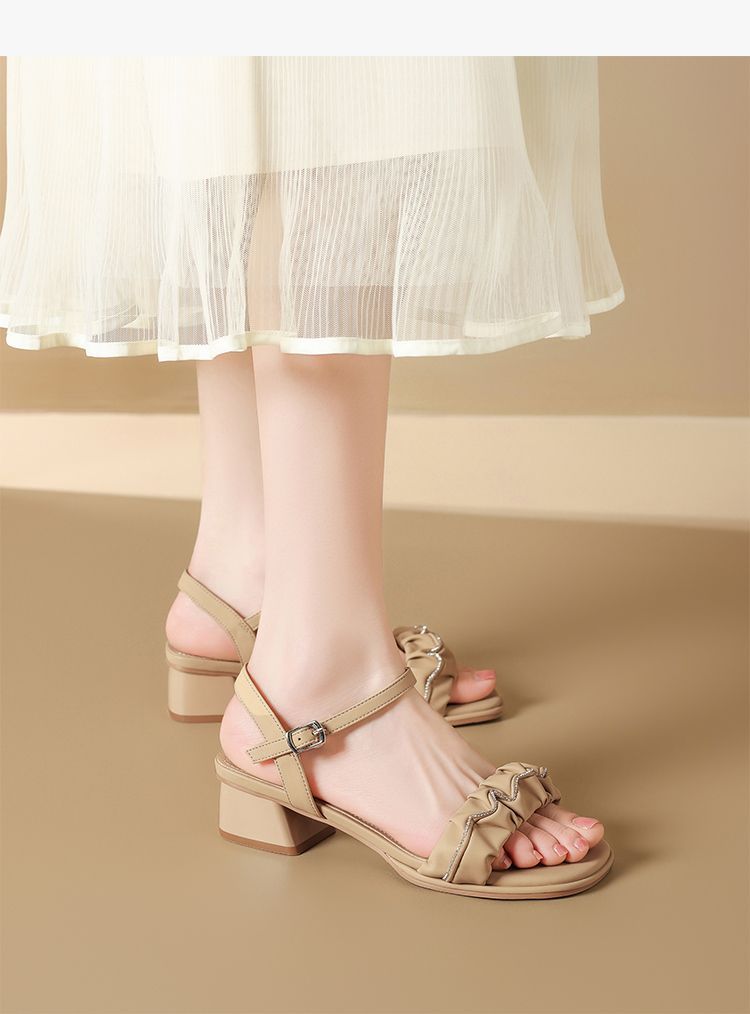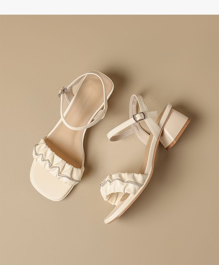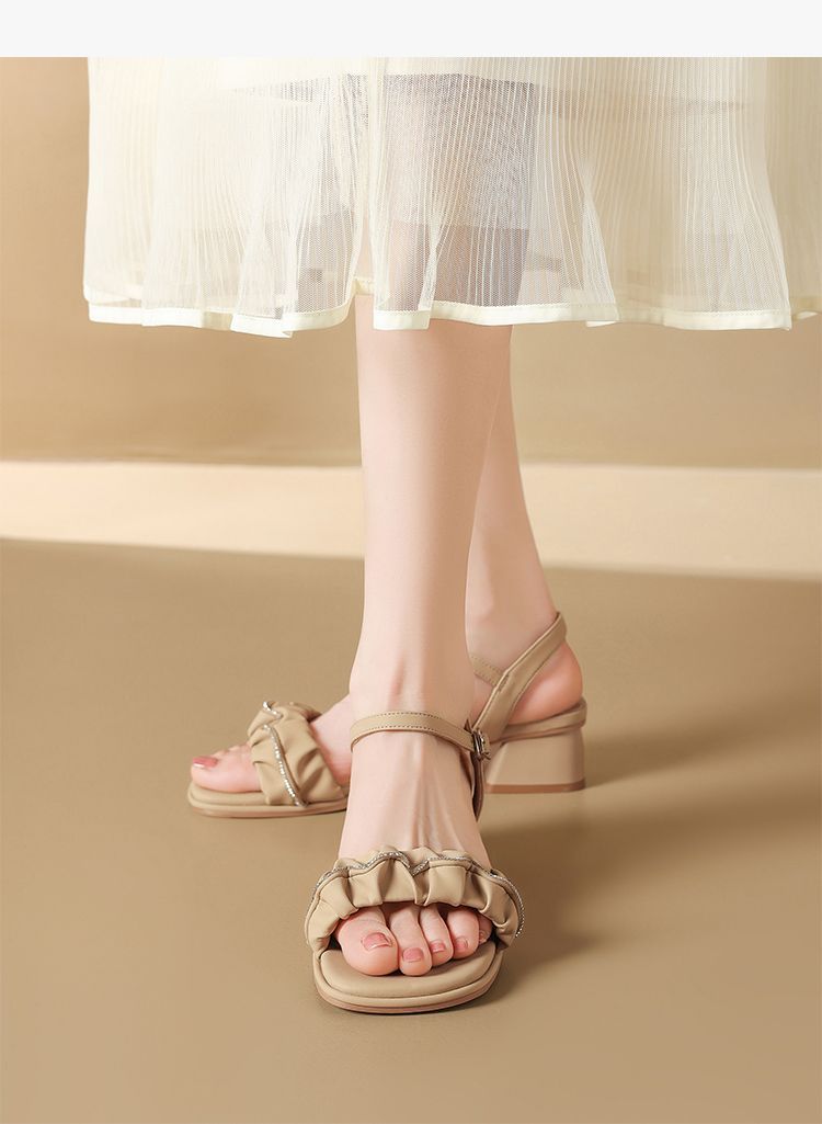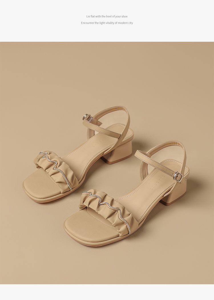 ZHR则则一字带水钻粗跟凉鞋女2025夏季新款优雅柔软显高粗跟凉鞋