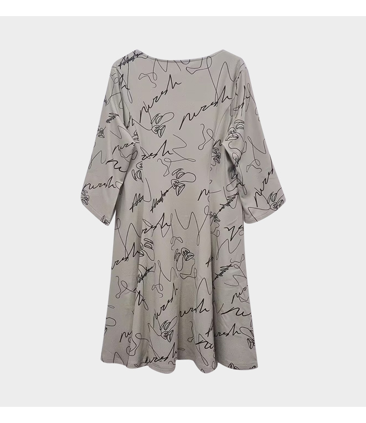VIVIAN LIU Y2257403秋女装新款方V领宽松长袖印花针织连衣裙