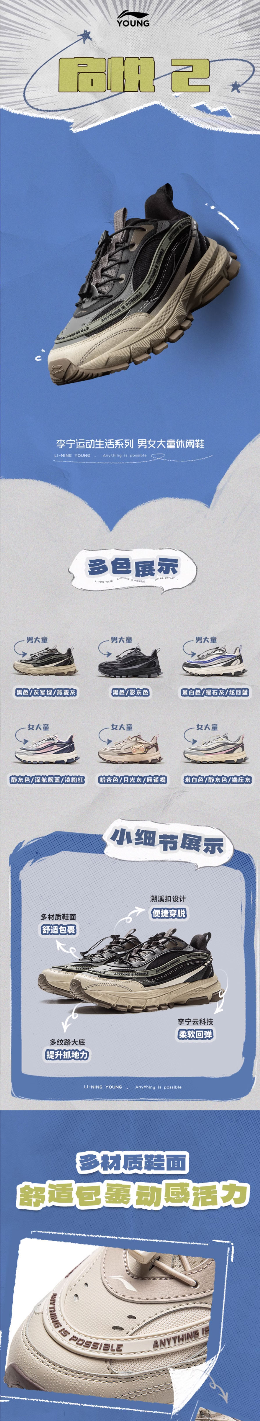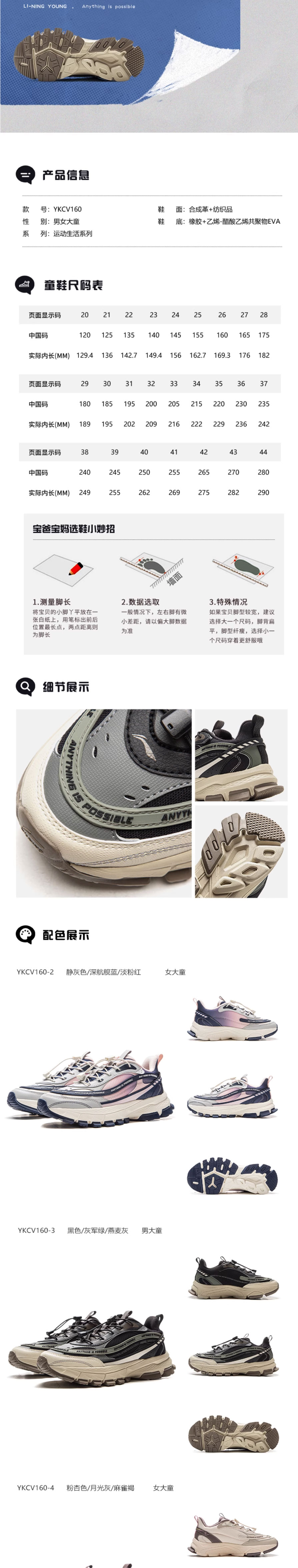 李宁童鞋启悦2休闲鞋男女大童2025新款加绒低帮童鞋YKCV160-4