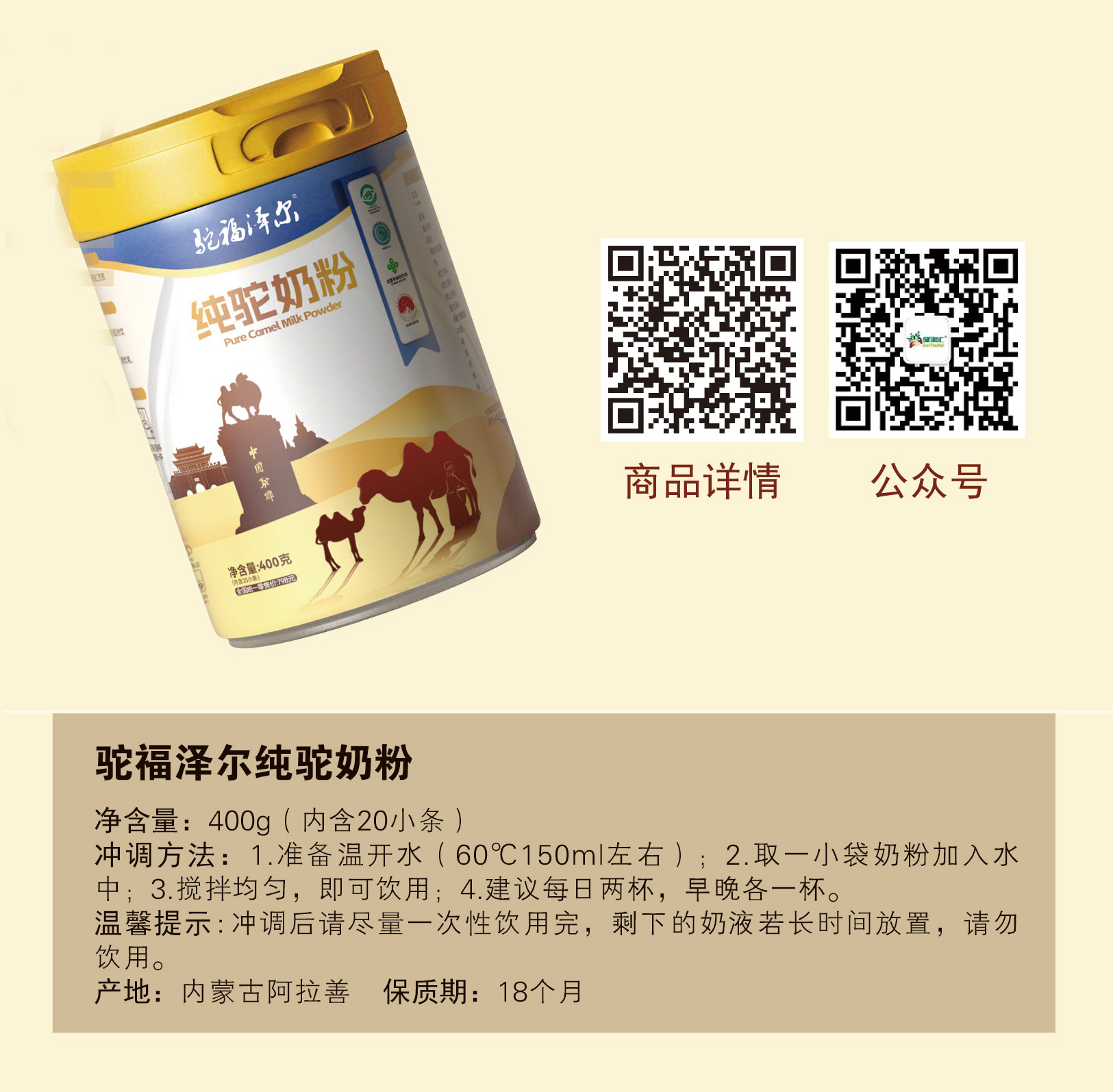 驼福泽尔纯驼奶粉