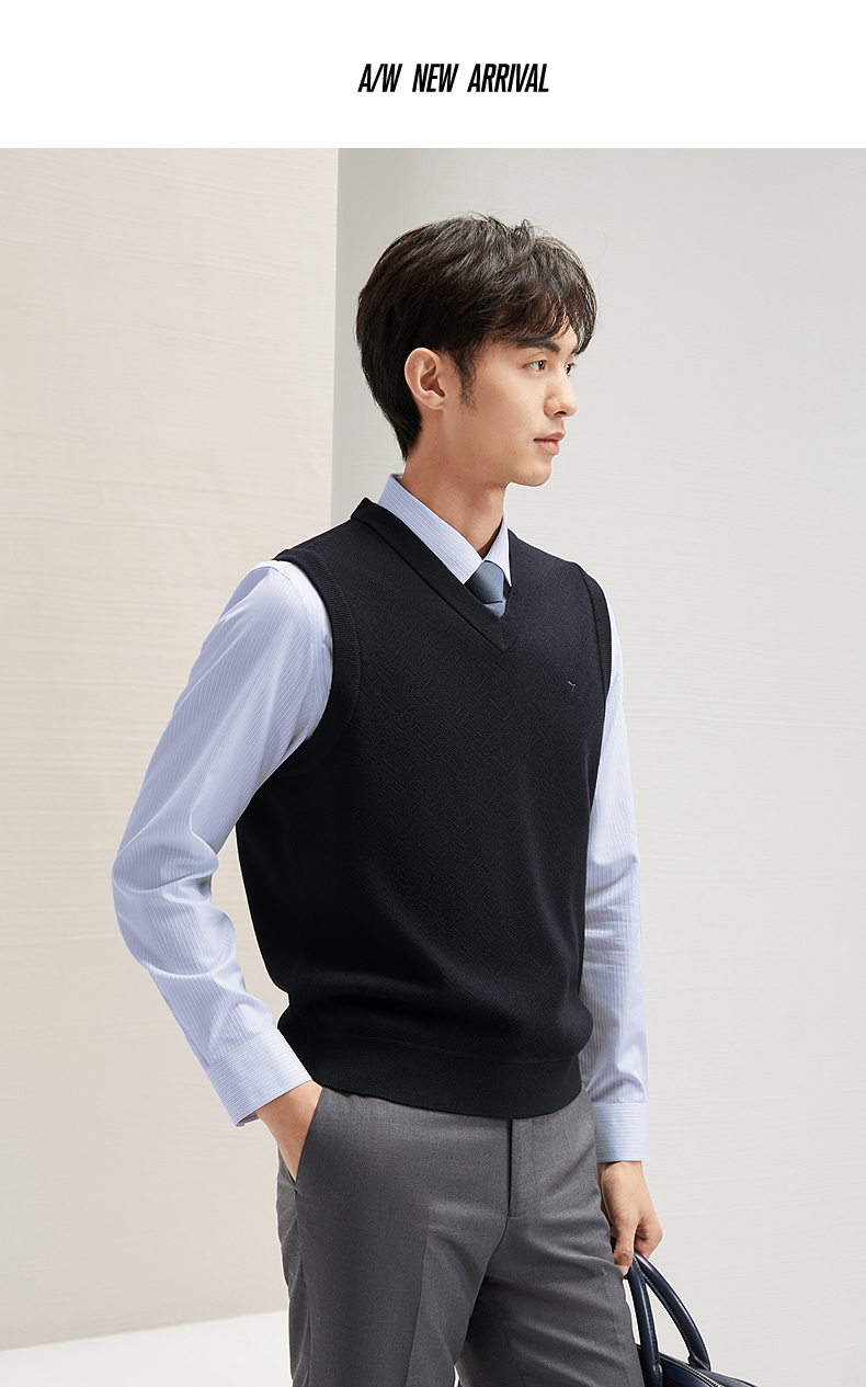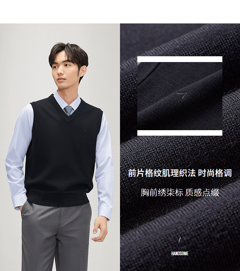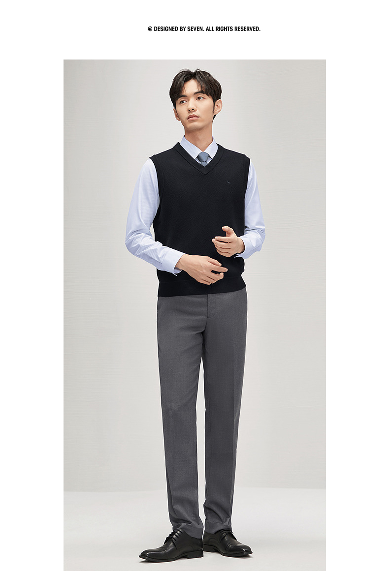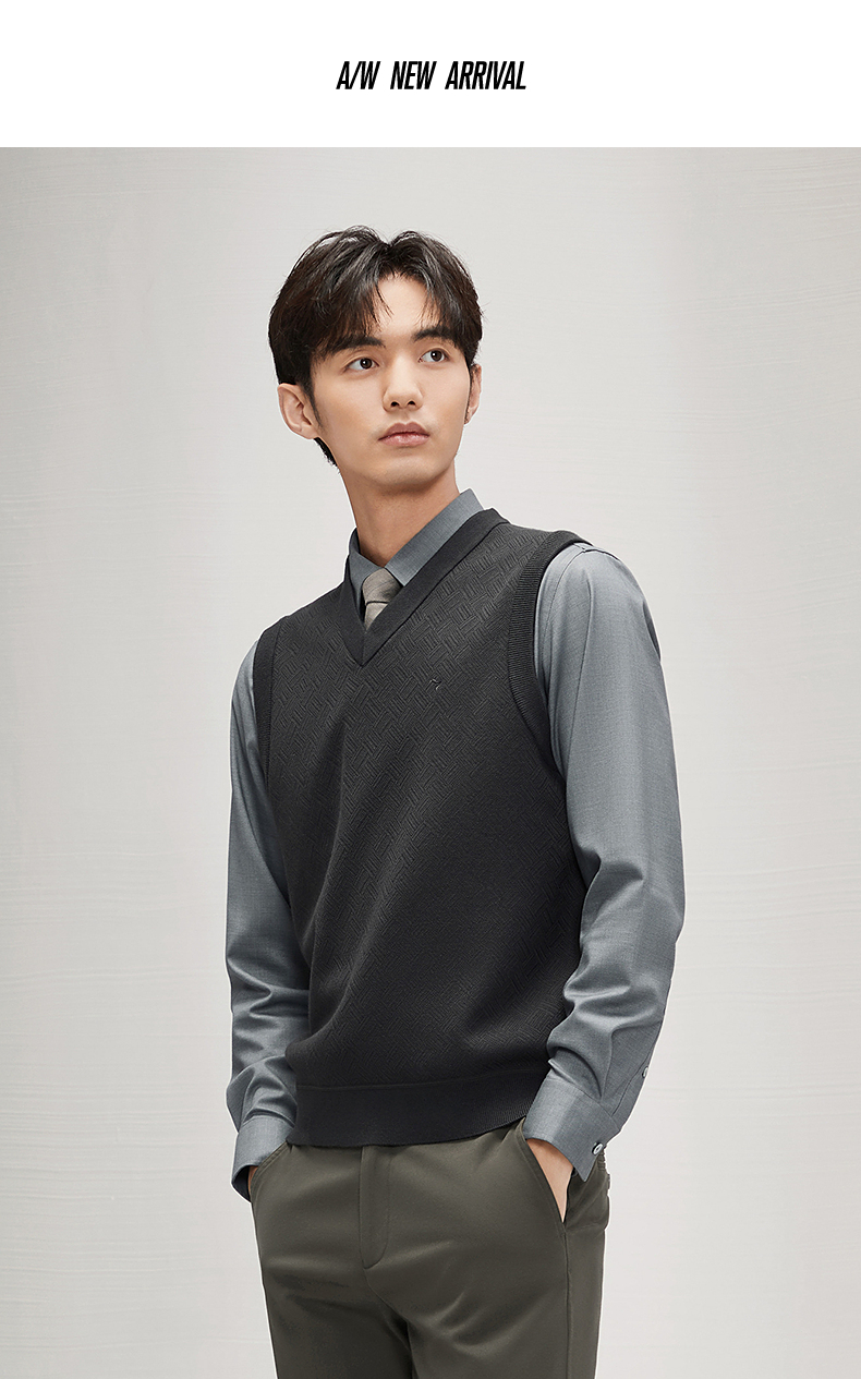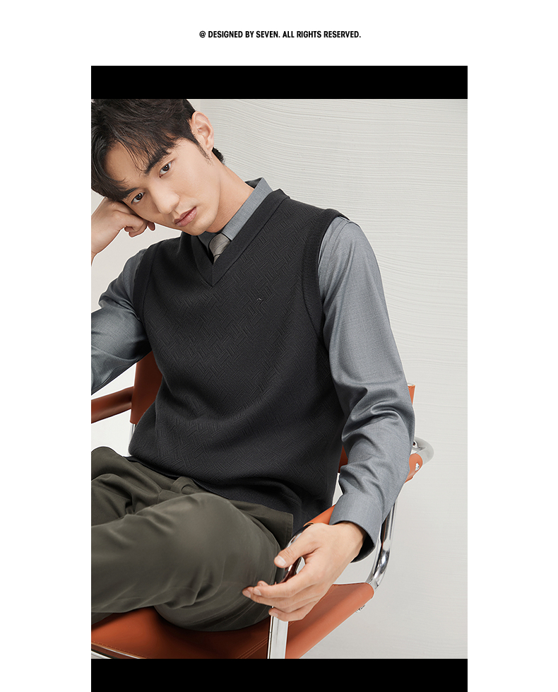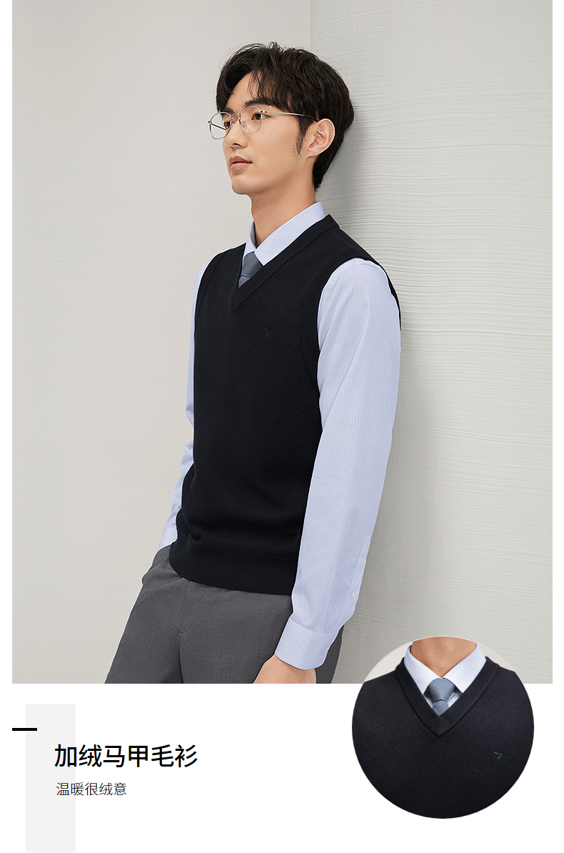 柒牌男装背心毛衣男士2024秋冬新品时尚休闲V领加绒格纹打底毛衫 127Y70780